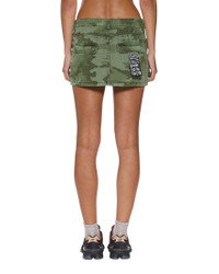 The Micro Mini Cargo Skirt brings back an iconic Ksubi silhouette, delivering a bold throwback to the 2000s. Sitting low on the hips, this skirt is made from cotton ripstop in overdyed green camo. Details include side facing 3D cargo pockets, flap pockets at back with concealed snaps on all pockets. Featuring Ksubi anti-silver hardware, T-box branding and our signature 3x4 embroidery. FEATURES, SIZE & FIT - Relaxed denim skirt - Super low rise - Zip fly - Mini length - Cargo pockets - T-box branding - 3x4 cross embroidery - Signature woven pocket tag - Branded hardware - No stretch - 100% cotton - Size 26 length (waist to hem): 27.5cm / 10 3/4" - Model is wearing a size 26/S, height 178cm/5'10", bust 80cm, waist 62.5cm, hip 92cm - Machine wash cold, with like colours - Do not tumble dry - Do not bleach - Cool iron if necessary - WSP25SK009