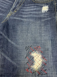 - condition : 7/10 (please refer photo as per attach) - size end to end measurement in inch; W: 14” (28”) Outseam: 40.7” Inseam: 30.5” Thigh: 10” Front Rise: 10” Open Leg: 6.5” - material: - Payment Method : Accept Paypal only.