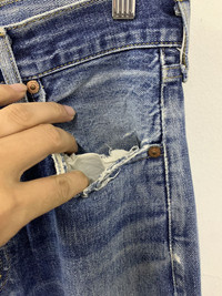 Vintage Destroy Levis 702 Back Cinch Donut Button
