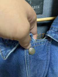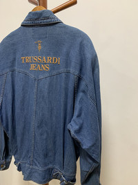 Vtg Trussardi Denim Jacket Big Back Embroidery Spellout Logo