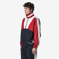 Blue Red Unisex Short Jacket with Concealed Hood and Recycled Fabric Oh FZ is a subtly oversized unisex short jacket, inspired by 80s and 90s sportswear reinterpreted from a lifestyle perspective. The design reconnects to K-Way's sporting past with the use of the brand's original logo, applied to the garment and embossed on the zip closure puller. Made from ripstop nylon in different colour block variations, it features silver inserts under the side pockets made from recycled fabric. The jacket has a concealed hood integrated into the high collar with snap buttons, elasticated cuffs, and revamped details such as transparent heat-taped seams. - Recycled ripstop nylon, waterproof, windproof, breathable - Transparent heat-taped seams - Concealed hood integrated in the collar - Full zip closure - Zip puller with K-Way original logo - Silver nylon inserts - Side pockets with snap buttons - Regular fit - 3D logo patch Features Description: Jackets, Short Gender: Unisex Season: Spring, Summer Composition Entire: 100% Recycled Nylon Style: K8134KW - Color: B00