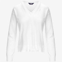 Grey White Women's Cotton Crop Sweater with V-Neck Design Adine is a women's cotton crop sweater with a regular fit and a clean, subtle appeal. This V-neck style is made from fine zero-pilling cotton plain stitch knit. The ribbed trims provide a perfect snug fit. - Zero-pilling mako cotton yarn - Fine knit - V-neck design - Ribbed trims - Regular fit - Tone-on-tone logo Features Description: KNITWEAR, Pull Over Gender: Woman Season: Spring, Summer Composition Entire: 100% Cotton Style: K2135SW - Color: 001