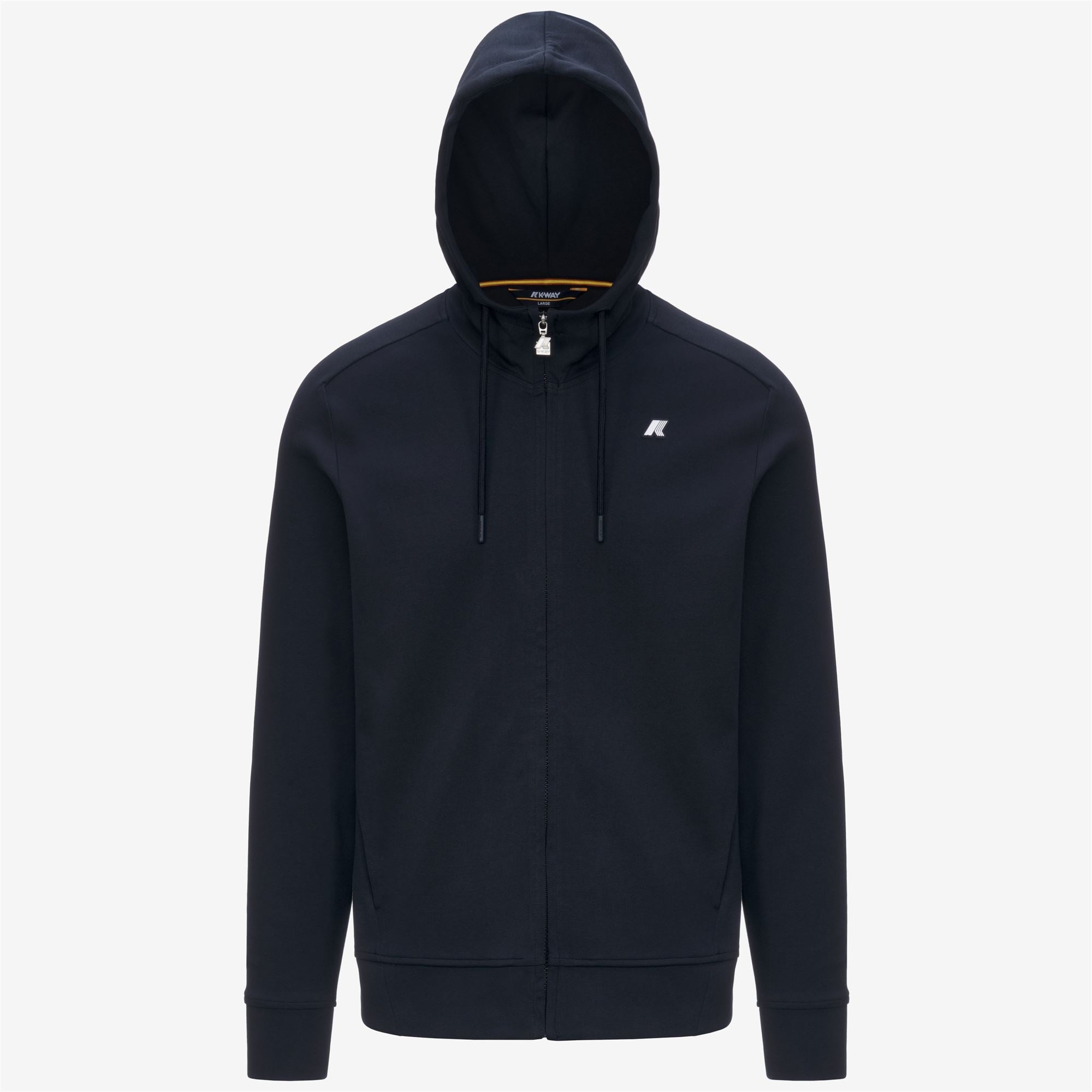 Blue Men's Athletic Fleece Jacket with Pockets Anton is a men's hooded sweatshirt with an athleisure style and a relaxed fit. Perfect for travel, sports, and leisure, it's made from soft technical interlock fabric with a high percentage of cotton, ensuring excellent freedom of movement. This full-zip hoodie features saddle sleeves, side pockets, and signature K-Way tape detail on the back. - Stretch interlock fabric - Shell fabric cuffs and hem - Zip closure - Side pockets - Regular fit - White silicone logo patch Features Description: Fleece, Jacket Gender: Man Season: Spring, Summer Composition Entire: 80% Cotton, 6% Elastane, 14% Polyester Style: K31367W - Color: K89