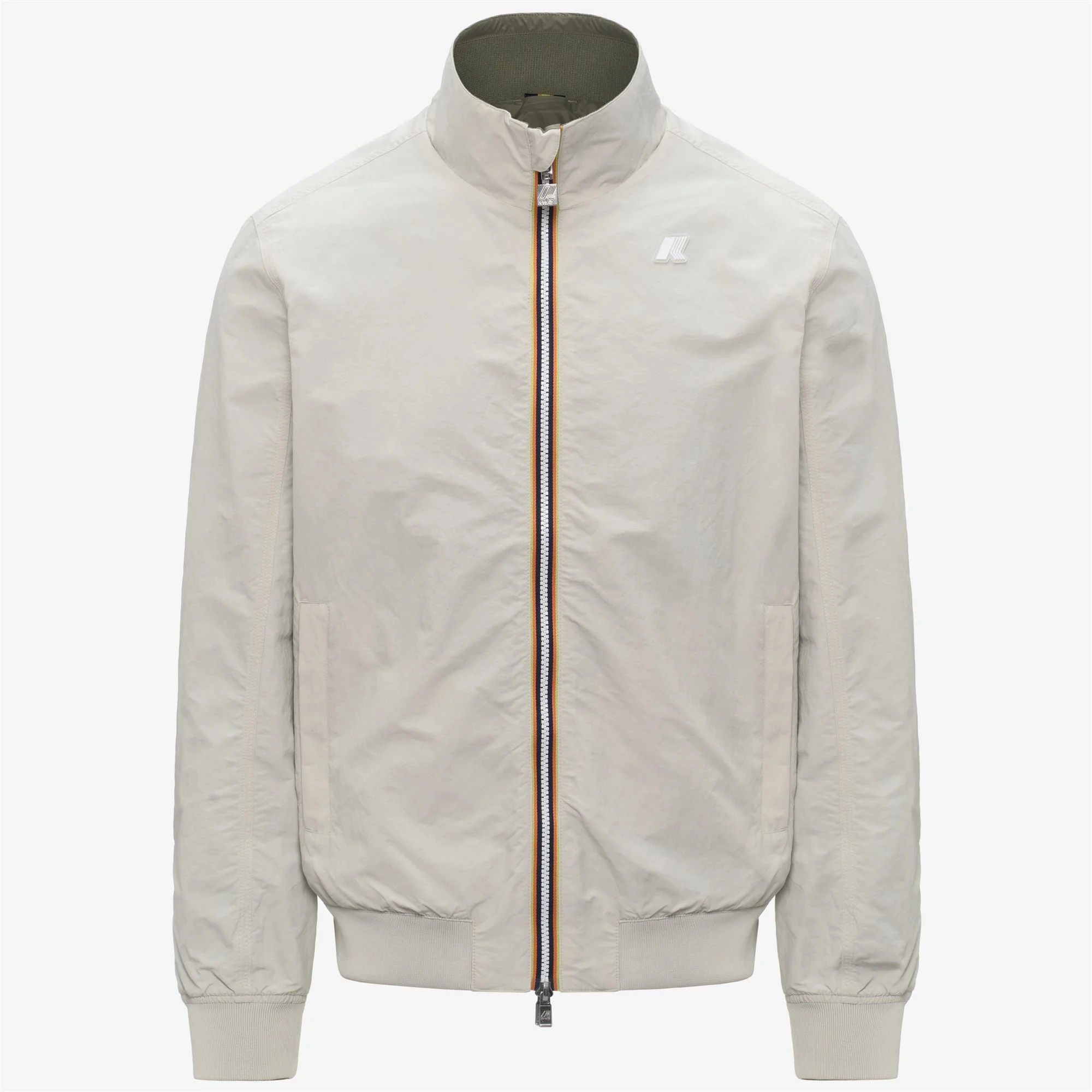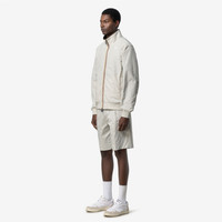 Arsene is a man's short jacket designed for milder seasons, featuring a reversible construction that offers two styles in one. One side is made from a crisp-feel cotton and recycled nylon blend, while the other is crafted from breathable, water-resistant recycled nylon in a contrasting colour. The jacket is finished with an adjustable hood, ribbed trims, and functional pockets on both sides. - Outer fabric: soft-touch cotton and recycled nylon blend with water and stain-repellent treatment - Inner fabric: 100% recycled nylon with matte waterproof finish - Waterproof rating (inner fabric): 3,000 mm water column - Reversible design - Heat-taped seams - Zip fastening - Ribbed cuffs and hem - 2 zip pockets - 2 snap-button pockets - Slim fit - White silicone logo patch and white printed logo Features Description: Jackets, Short Gender: Man Season: Spring, Summer Composition External: 30% Cotton, 70% Recycled Nylon Lining: 100% Recycled Nylon Style: K8135PW - Color: B0L