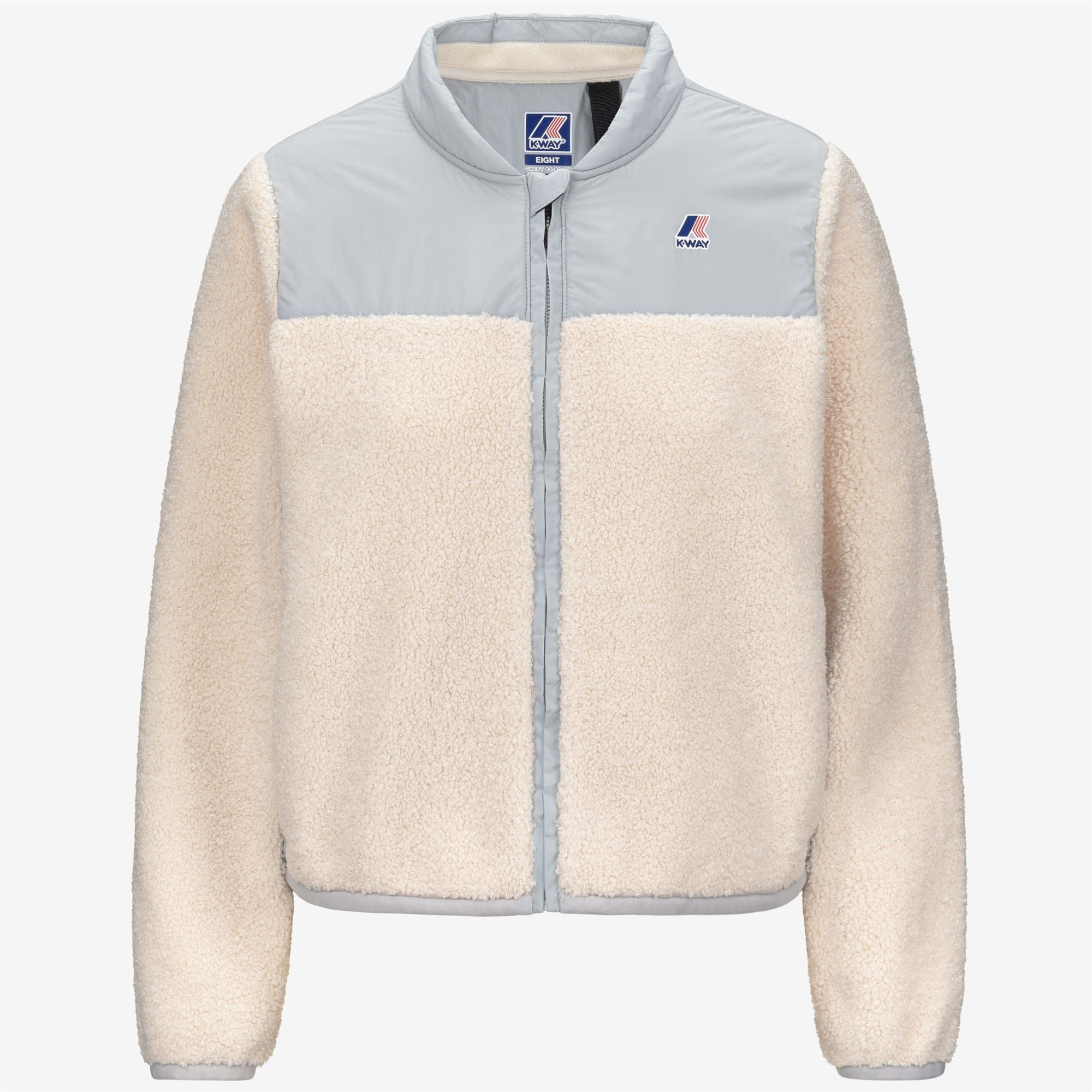 Grey Women's Fleece Jacket with Recycled Insulation Bernardine is a women’s short jacket designed for transitional weather and early cold spells. Made from warm, soft sherpa-effect fabric with waterproof and breathable micro ripstop nylon inserts (100% recycled), it combines comfort and protection. The interior features lightweight PrimaLoft® padding, a recycled, polyester-based insulating fiber that provides low-bulk warmth. - Sherpa-effect fabric - Waterproof, water-repellent, windproof and breathable ripstop nylon inserts - Lightweight PrimaLoft® padding - Medium warmth rating - Bomber jacket collar with nylon outer layer - Zip fastening - Inner windproof flap - 2 side zip pockets - Adjustable drawcord hem - Regular fit - Colour-printed logo Features Description: Fleece, Jacket Gender: Woman Season: Fall, Winter Composition Shell Fabric B External: 100% Polyester Shell Fabric A External: 100% Recycled Nylon Style: K61343W - Color: B00