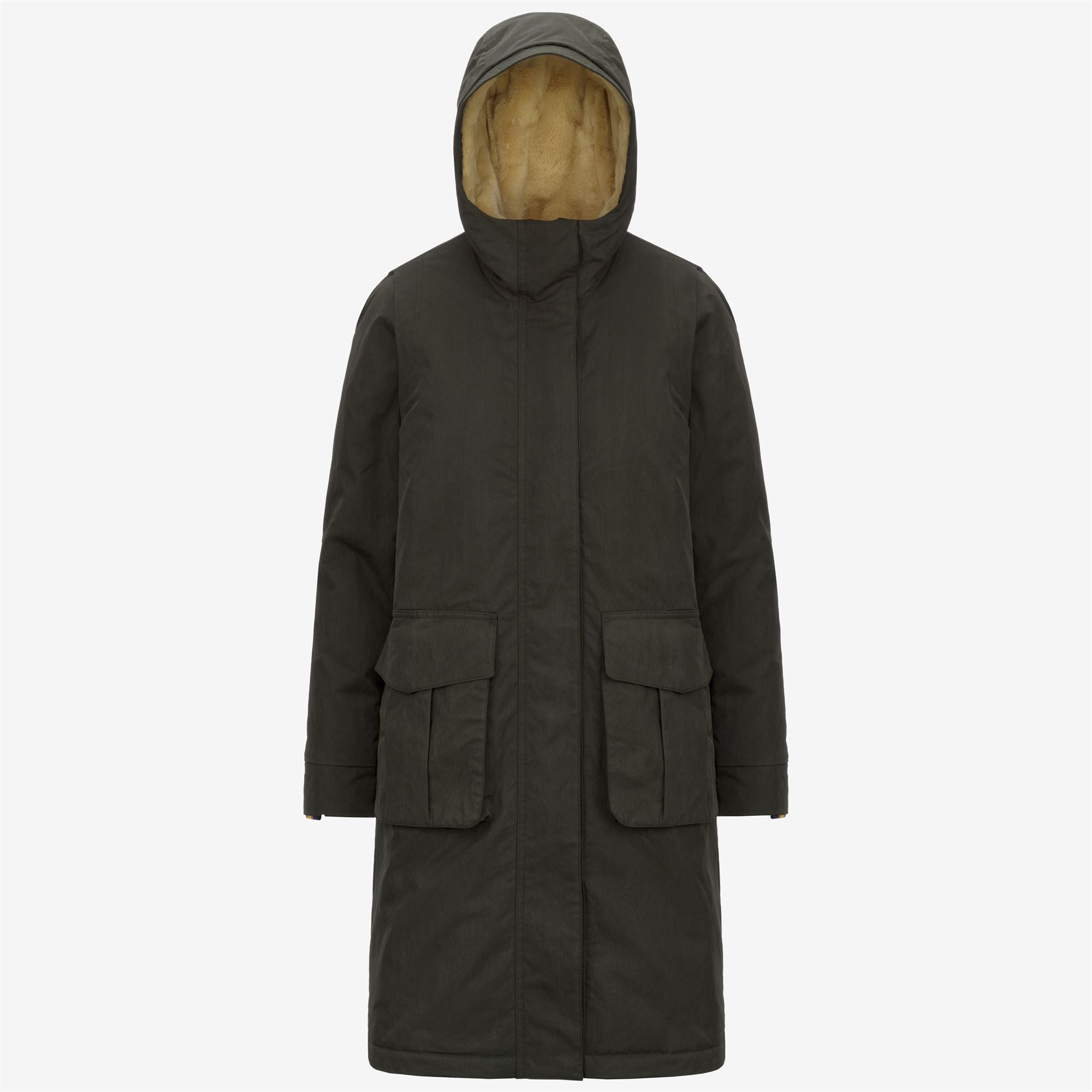 Green Women's Long Cotton Parka with Faux Fur and PrimaLoft Padding Brunil is a women’s long parka designed to complement an urban look, ideal for transitional seasons and early cold spells. Made from brushed cotton-blend fabric, it features lightweight PrimaLoft® padding and a partially lined faux fur interior for added warmth and comfort. With an enveloping hood and roomy patch pockets, it offers both protection and everyday functionality. - Brushed cotton-blend fabric - Lightweight eco-friendly PrimaLoft® padding - Partially lined with faux fur-effect synthetic fabric - Medium warmth rating - Adjustable drawcord hood - Double-slider zip fastening - Partial zip flap - Internal cuffs - 2 patch flap pockets - Regular fit - K-Way tape detail at the cuff Features Description: Jackets, Long Gender: Woman Season: Fall, Winter Composition External: 64% Cotton, 36% Recycled Nylon Padding: 100% Polyester Lining: 100% Polyester Style: K7136EW - Color: BB3