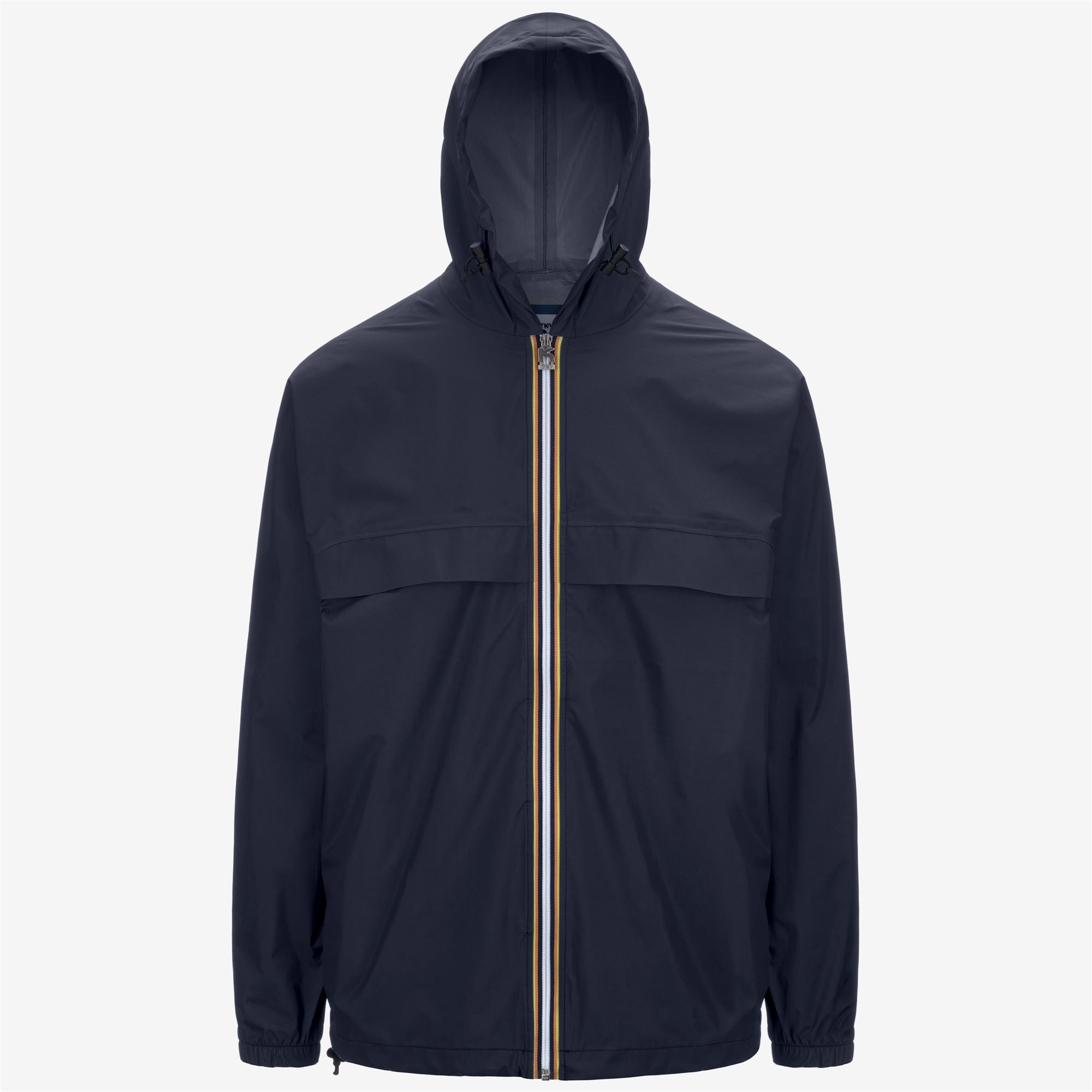 Blue Unisex Packable Rain Jacket with Adjustable Hood Claude is a unisex short jacket that pays homage to the first iconic K-Way packable rain jacket, designed in 1965. It features a full zip closure in the brand's signature colours with the original puller from the 1965 jacket, an adjustable drawstring hood, and elasticated cuffs for effective rain and wind protection. The extremely compact volume of this jacket when folded into its pocket makes it the perfect companion to pack in your bag or backpack to easily withstand unexpected weather changes. - Recycled ripstop nylon, waterproof, windproof, breathable - Packable - Heat-taped seams - Adjustable hood with drawstring - Full zip closure - 1965 K-Way zip puller - Elasticated cuffs - Zipped packable pocket - Adjustable drawstring bottom hem - Regular fit Features Description: Jackets, Mid Gender: Unisex Season: Spring, Summer Composition Entire: 100% Recycled Nylon Style: K21429W - Color: K89