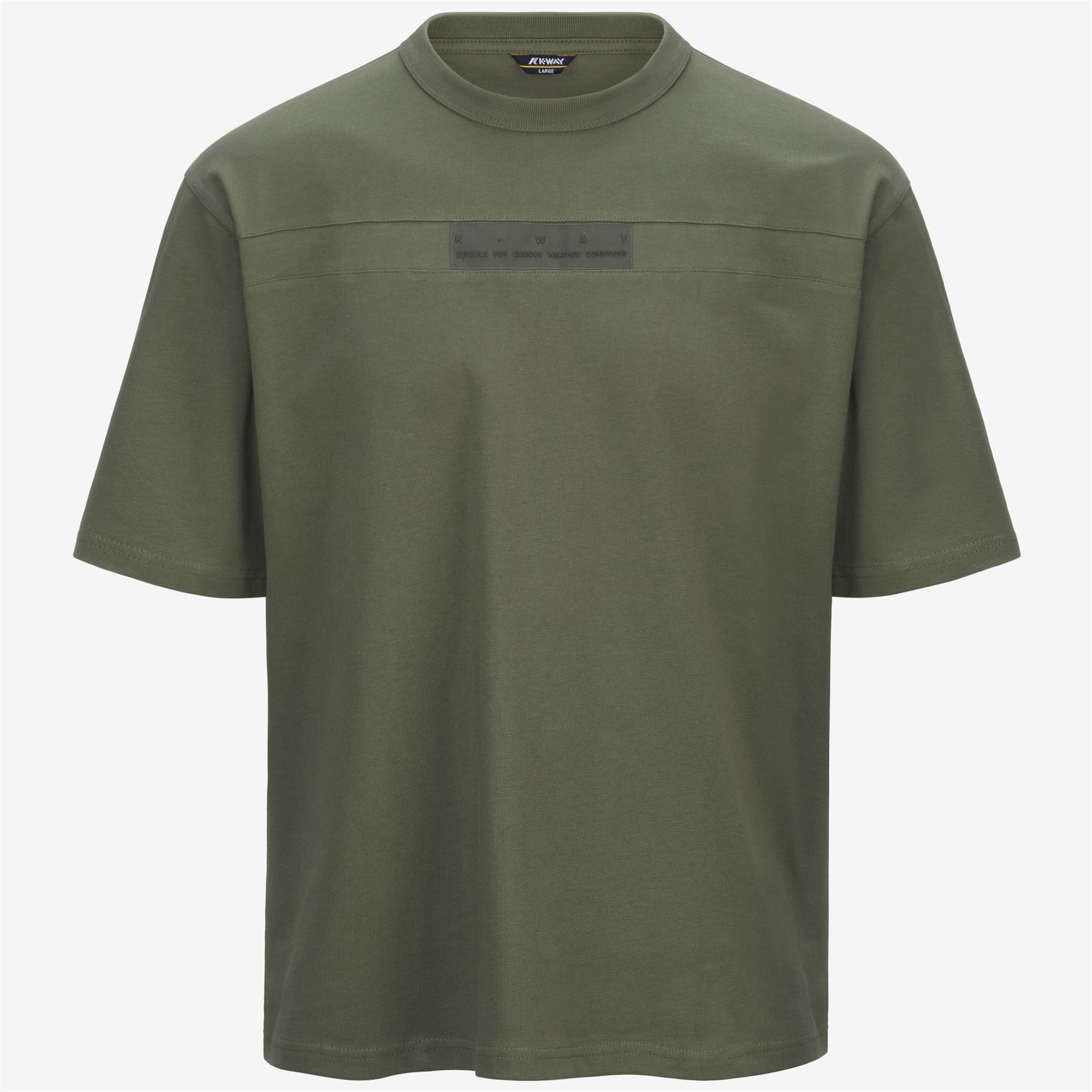 Lichen Green Men's Casual Cotton T-Shirt with Printed Appliques Fantome is a men's crew-neck T-shirt made from soft, heavy cotton jersey with a regular fit. The T-shirt flaunts a sporty look with printed lettering silicone appliques on the front and back. Its clean, versatile style makes it a staple for everyday casual wear. - Cotton jersey - Regular fit - Printed silicone appliques Features Description: T-Shirts & Top, T-Shirt Gender: Man Season: Spring, Summer Composition Entire: 100% Cotton Style: K2135LW - Color: V15