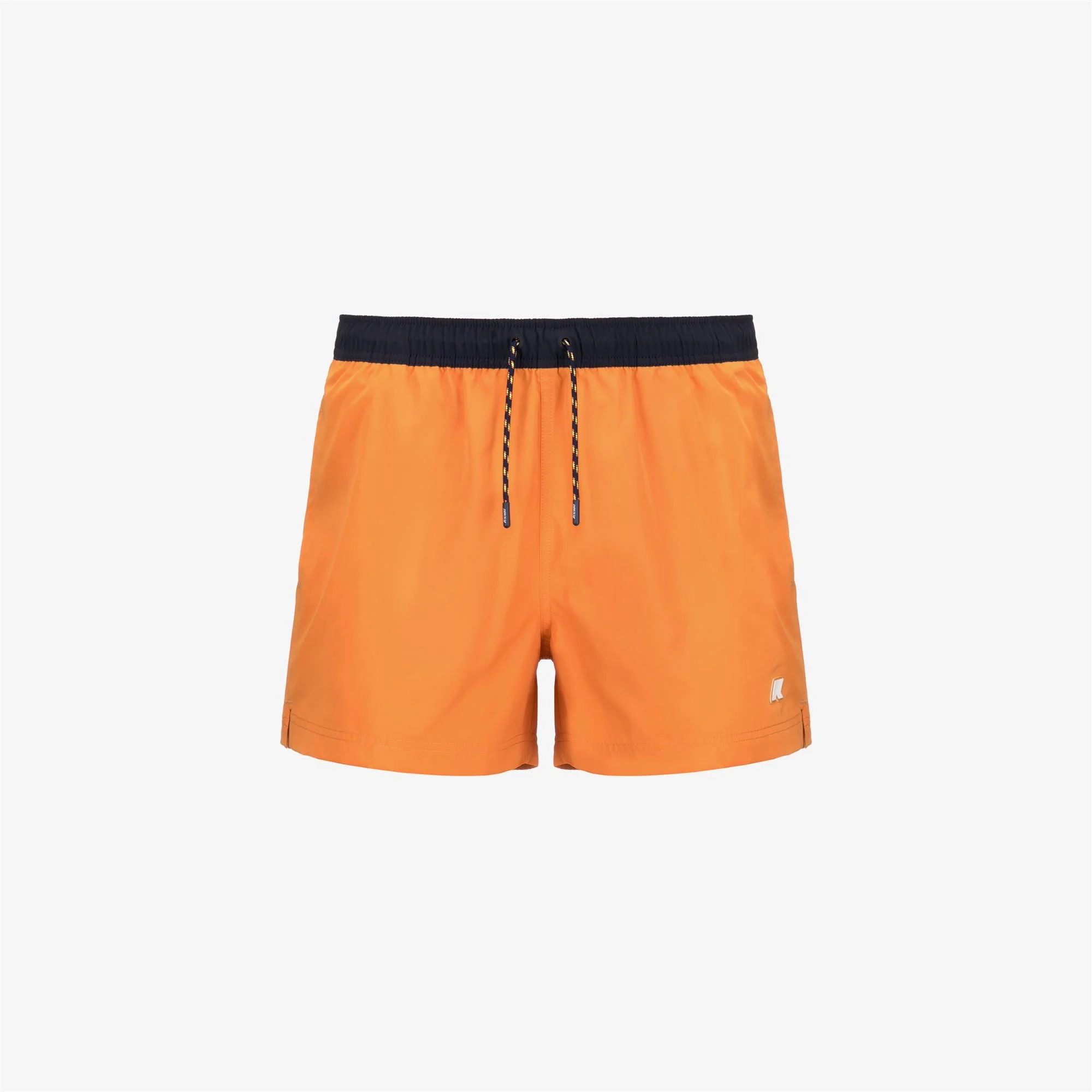 Orange Blue Men's Quick-Dry Swimming Trunks with Inner Mesh The Mehdy short swimming trunks boast a classic boxer fit and a versatile, functional design. Crafted from quick-dry fabric, these swim shorts feature a contrast elasticated waistband with a drawstring in K-Way’s iconic colours. Complete with inner mesh briefs and side slits for maximum freedom of movement. - Quick-dry nylon - Inner mesh briefs - Drawstring waist - Side pockets - Rear pocket with strap fastening - Regular fit - White silicone logo patch Features Description: Bathing Suits, Swimming Trunks Gender: Man Season: Spring, Summer Composition Entire: 100% Polyester Style: K3131MW - Color: AP9