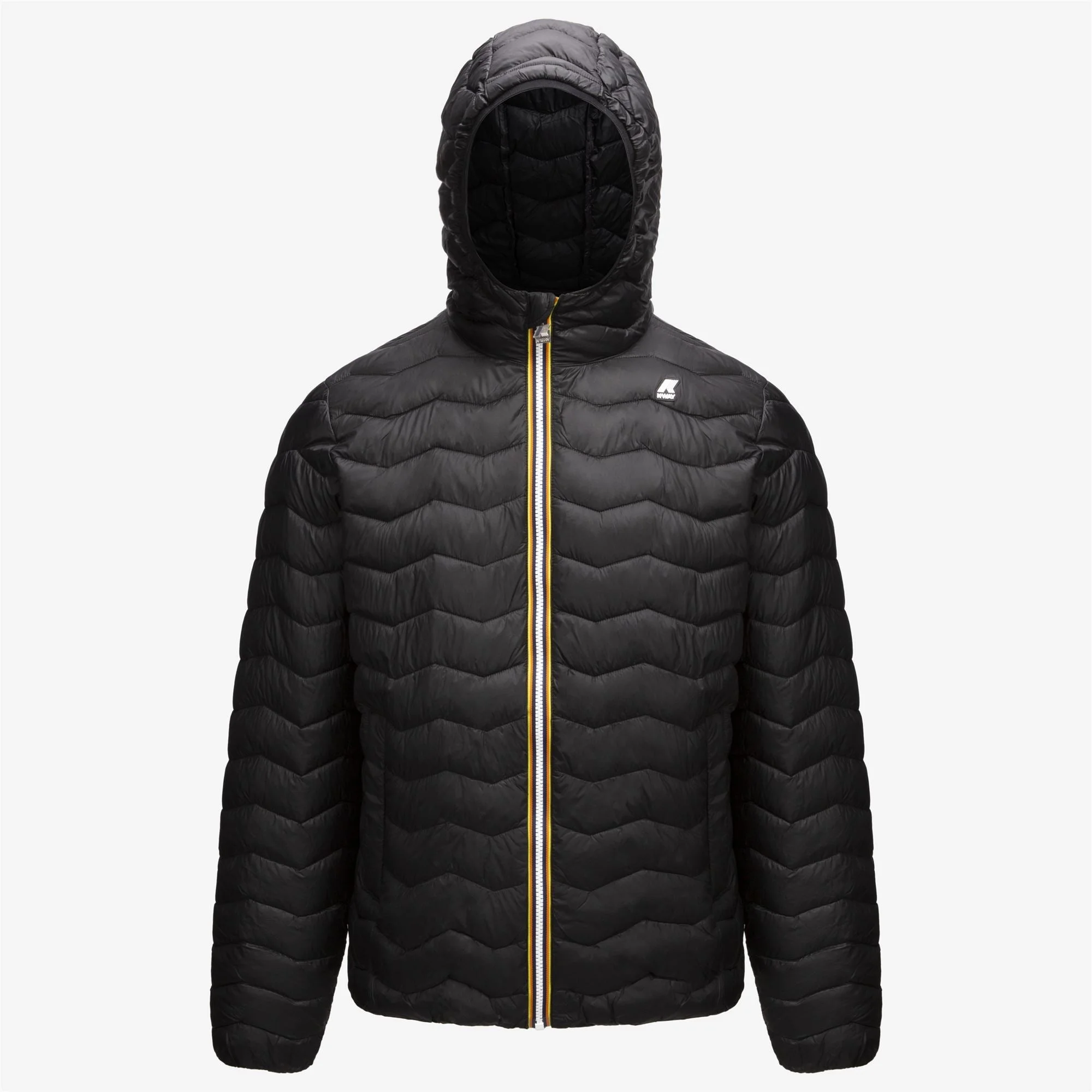 Black Grey Men's Eco-Friendly Quilted City Jacket K-Way's Jack style is a classic men's jacket that demonstrates the brand’s commitment to protecting the planet. Crafted from recycled nylon that offers protection from wind and rain, it’s enhanced with wavy quilting for a distinctive graphic look and filled with Thermore® padding, a highly insulating fibre created from recycled plastic. - Water-repellent and windproof recycled nylon - Eco-friendly Thermore® padding - Wavy quilting - Medium warmth - Zip fastening - 2 snap button pockets - Hood with elastic cords - Adjustable hem with elastic cords - Slim fit - White silicone logo Features Description: Jackets, Short Gender: Man Season: Spring, Summer, Fall, Winter Composition External: 100% Nylon Lining: 100% Nylon Padding: 100% Recycled Polyester Style: K6121HW - Color: USY