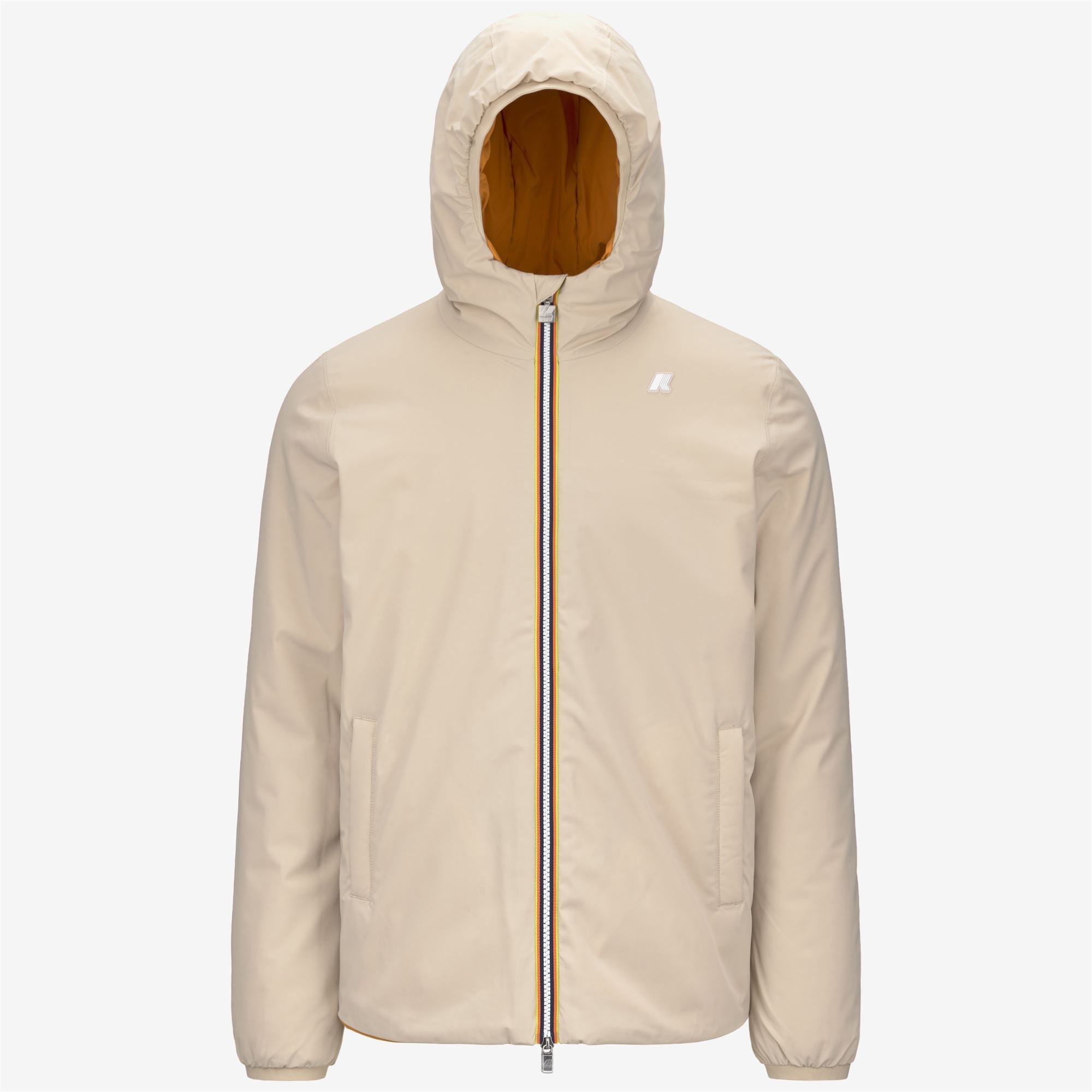 Beige Brown Men's Reversible Warm Jacket with Synthetic Padding The Jack men’s jacket boasts a slim fit and a reversible design for endless uses, combining a waterproof stretch polyester layer with a contrast windproof polyester reverse. Insulated with synthetic padding for a mid level of warmth perfect for in between seasons, the design features heat-taped seams for thermal insulation and superior comfort during outdoor activities. - Waterproof, water-repellent, windproof and breathable stretch polyester - Windproof and water-repellent polyester - Synthetic padding - Medium warmth - Reversible - Heat-taped seams - Adjustable hood with elastic cords - Zip fastening - Elasticated cuffs - 2 zip pockets - 2 snap button pockets - Slim fit - White silicone logo Features Description: Jackets, Short Gender: Man Season: Fall, Winter Composition Padding: 100% Polyester External: 8% Elastane, 92% Nylon Lining: 100% Polyester Style: K6128VW - Color: ASA
