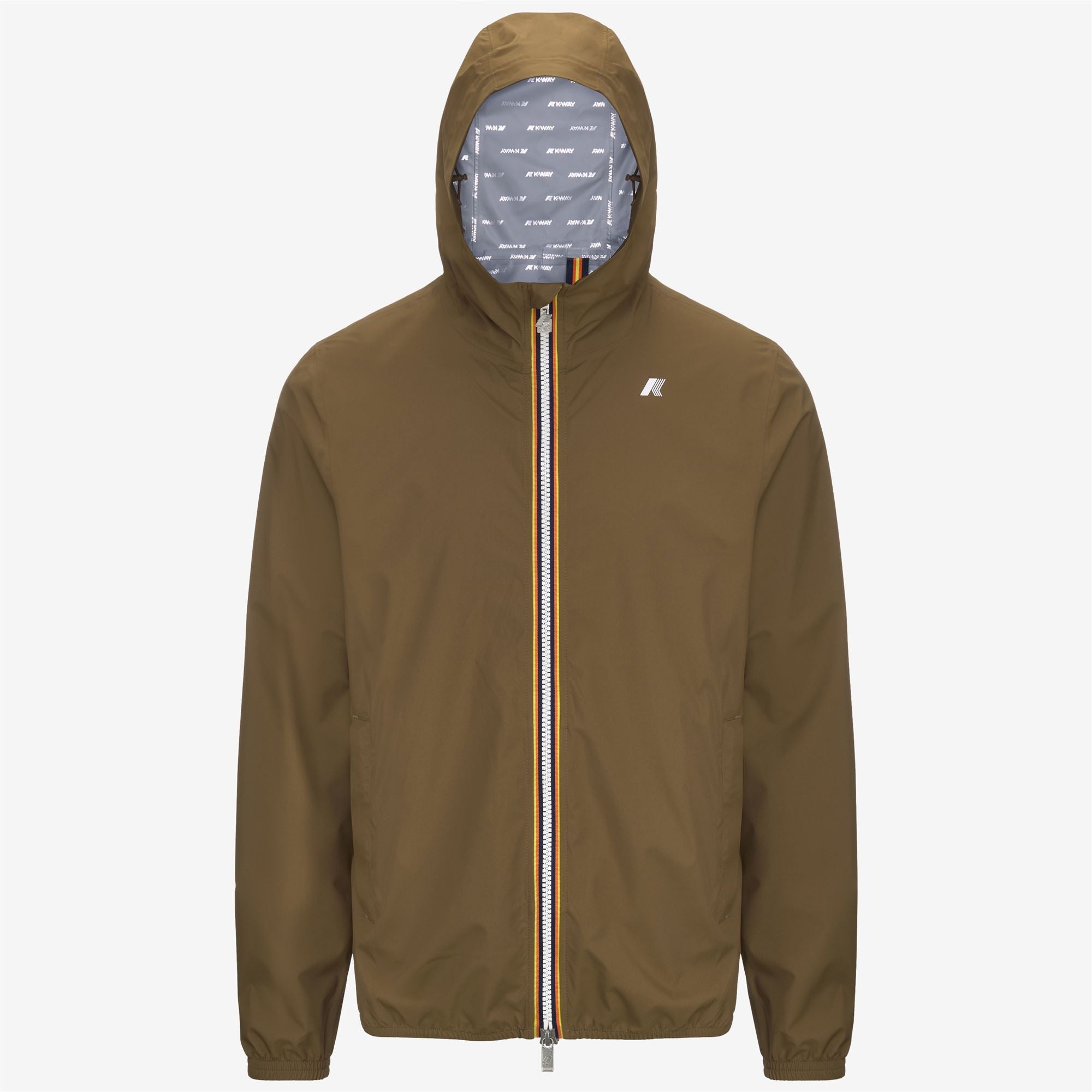 Brown Green Men's Slim Fit Waterproof Jacket for Variable Weather Jack is a men's short slim fit jacket, perfect for transitional seasons. It's crafted from stretch technical fabric that allows for unrestricted movement while providing rain and wind protection, with water resistance up to 10000 mm. The interior is lined with an insulating membrane with all-over silver-tone K-Way lettering print. Functional details, such as zipped pockets, a wrap-around adjustable hood, and elasticated cuffs and hem ensure an easy, comfortable fit. - Waterproof, windproof and breathable stretch polyester fabric - DWR (Durable Water Repellent) treatment - Water resistance: 10000 mm water column - Logo-printed interior membrane - Heat-taped seams - Adjustable drawstring hood with stoppers - Zip fastening - Elasticated cuffs and hem - 2 zipped pockets - Slim fit - White printed logo Features Description: Jackets, Short Gender: Man Season: Spring, Summer, Fall, Winter Style: K5127QW - Color: 045