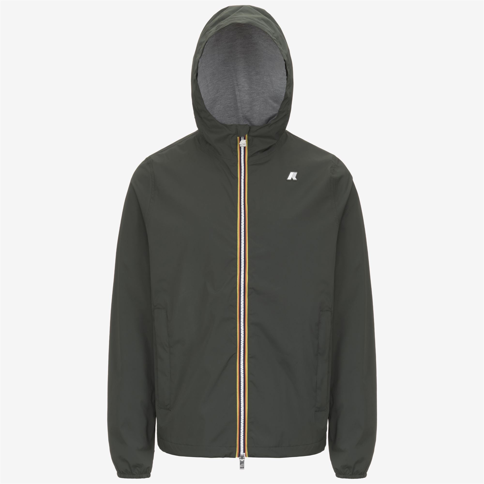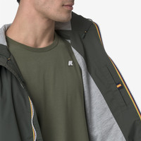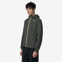 Blackish green Men's Weather-Resistant Slim Fit Jacket Jack is a men's slim-fit jacket, made from weather-resistant stretch nylon with soft grey melange cotton jersey lining on the front and back only, which provides superior comfort, excellent protection and a comfortable feel on the skin. The interior is finished with meticulous attention to detail: there are heat-taped seams and the iconic multicoloured K-Way tape at the waist for a distinctive signature touch. - Waterproof, windproof, breathable stretch nylon fabric - Cotton jersey lining - Heat-taped seams - Adjustable hood - Ventilation cut-out at back - Zip closure - Elasticated cuffs and hem - Adjustable drawstring hem - 2 zipped pockets - Slim fit - White silicone logo Features Description: Jackets, Short Gender: Man Season: Spring, Summer Composition Lining B: 100% Nylon External: 5% Elastane, 95% Nylon Lining A: 100% Cotton, 35% Polyester Style: K3123UW - Color: WMR