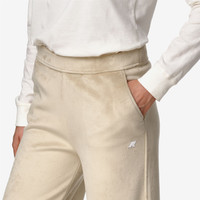 Beige brown Women's Cozy Velour Sport Trousers with Adjustable Waistband The Jenny women's pants are distinguished by their soft, cozy design with a lifestyle appeal and are crafted from a combination of different colors and fabrics. The exterior features smooth, velvety fleece with a subtle shine, while the interior is lined with sherpa-effect fleece, offering medium warmth suitable for mid-season wear. These flare-cut pants highlight the feminine silhouette with a fitted leg that flares at the bottom and an adjustable drawstring waistband. - Two-layer fleece fabric - First layer: lightweight, smooth fleece - Second layer: sherpa-effect fleece - Medium warmth level - Non-reversible - Adjustable waistband - Welt pockets - Regular fit - White silicone logo Features Description: Pants, Sport Trousers Gender: Woman Season: Fall, Winter Composition External: 100% Polyester Lining: 5% Elastane, 95% Polyester Style: K7128CW - Color: ATS
