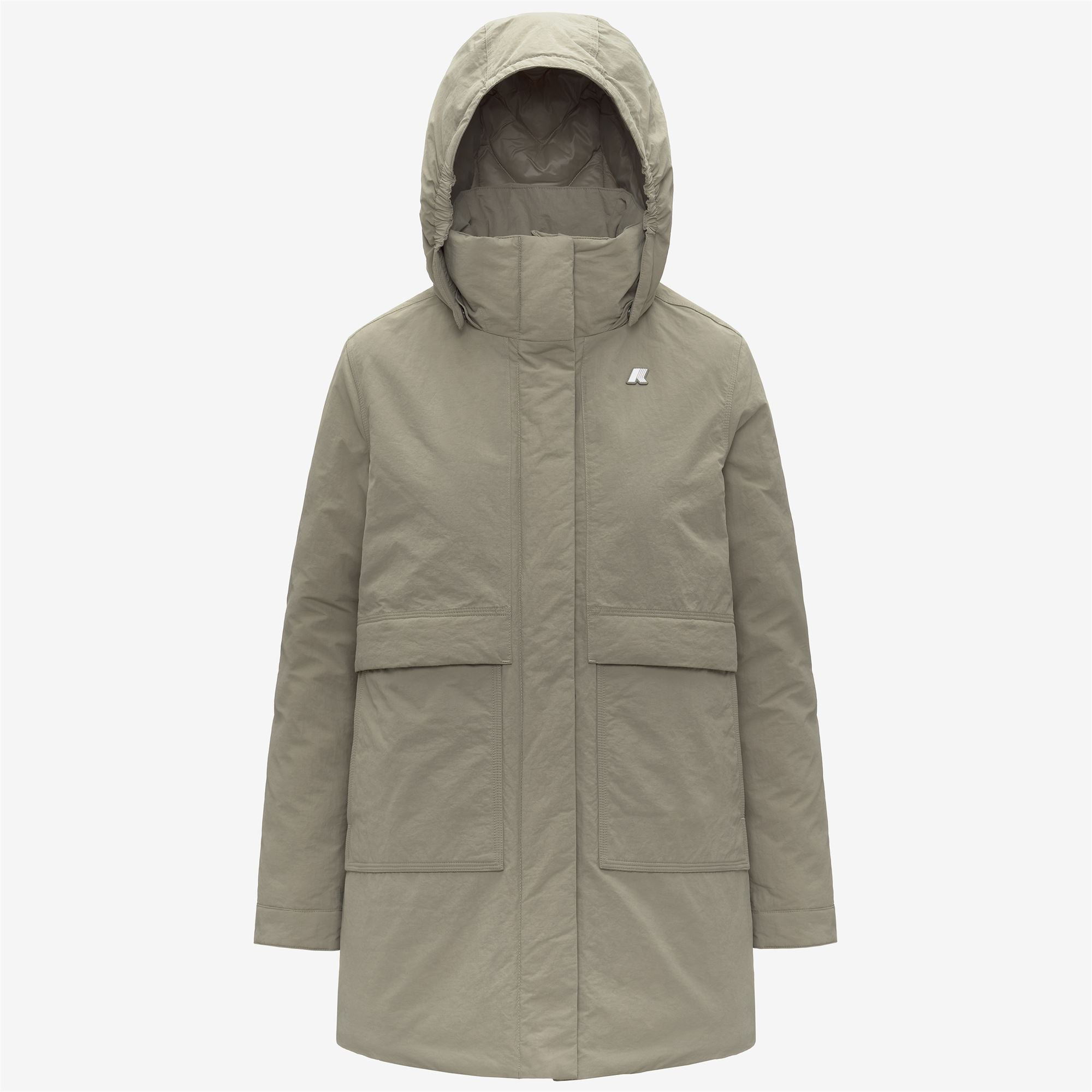Kalima is a women’s medium-length A-line jacket, designed for transitional seasons and early cold spells. Made from a water-repellent, windproof nylon-cotton blend and padded with PrimaLoft® insulation, it offers reliable protection in unpredictable weather. Details include a covered zip fastening, an enveloping high collar, a detachable hood, and generous pockets. - Water-repellent and windproof nylon-cotton blend fabric - Medium-weight PrimaLoft® padding - Herringbone quilted lining - Glossy nylon lining - Medium/high warmth rating - High collar - Detachable hood - Flared, adjustable hem - Zip fastening with protective flap - Double-entry patch pockets - 2 inner pockets with concealed zip - Triple-needle stitching - Regular fit - White silicone logo patch Features Description: Jackets, 3/4 LENGTH Gender: Woman Season: Fall, Winter Composition External: 30% Cotton, 70% Nylon Lining: 100% Nylon Padding: 100% Recycled Polyester Style: K41461W - Color: 633