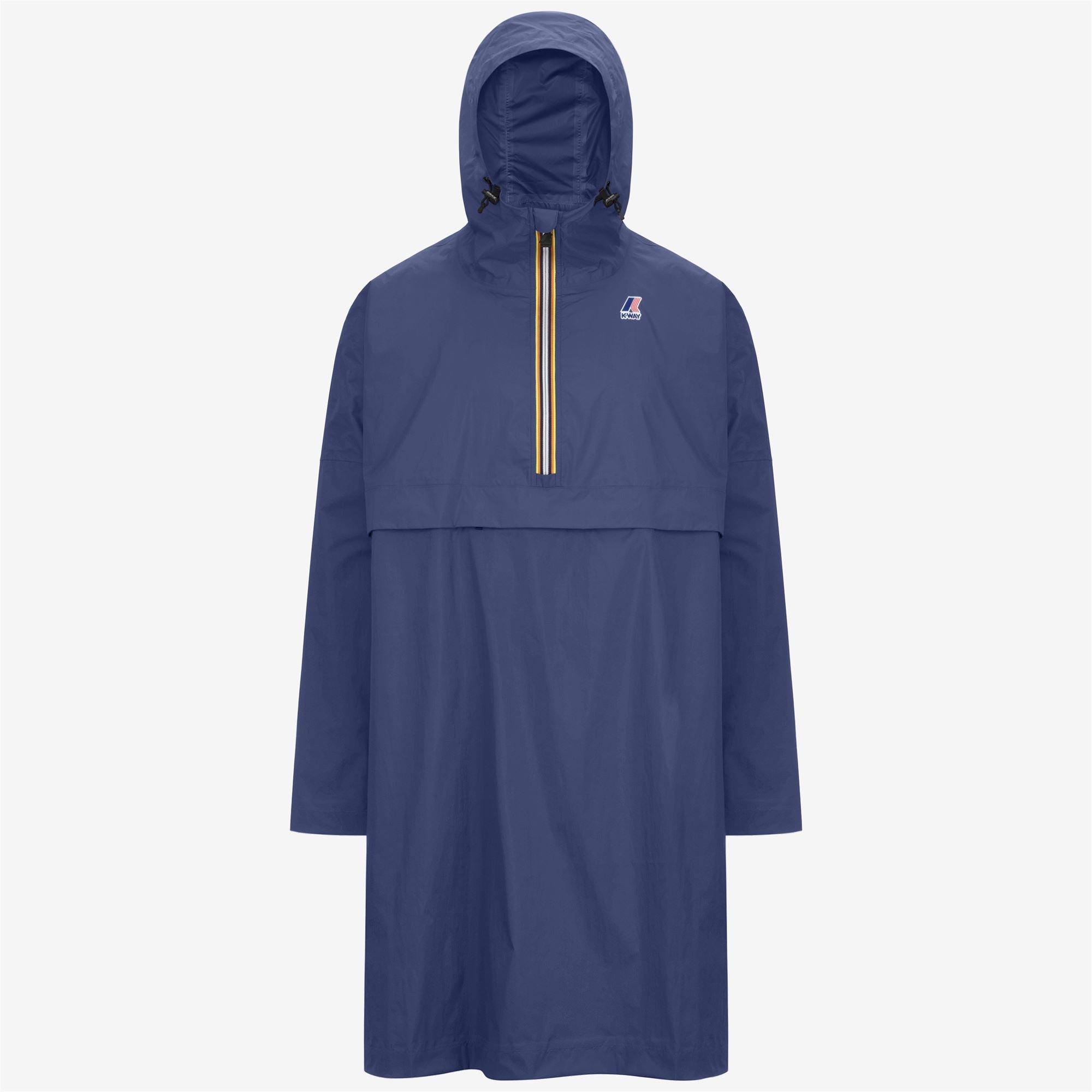 Cobalt blue Unisex Waterproof Poncho Jacket with Packable Design Fortune is a unisex long rainproof poncho, made from innovative micro ripstop 4.0 fabric, 100% recycled, which is even more weather-resistant and breathable due to its 10K water-resistance and 10K breathability rating, with heat-taped inner seams that guarantee excellent insulation from the wind or rain. The highlight of this style is its comfy, relaxed fit, together with the small volume it occupies when folded and packed in one of its two pockets. Ideal to be carried in a bag or backpack, it is designed to easily withstand sudden rain or wind. - Waterproof, water-repellent, windproof, breathable ripstop nylon fabric - DWR (Durable Water Repellent) treatment - Water resistance: 10000 mm water column - Breathability: 10000 g/sqm/24h - Packable - Heat-taped seams - Adjustable hood with drawstring - Half-zip closure - Inner windproof flap - Ventilation cut-out on the back - 2 zipped pockets - Loose fit Features Description: Jackets, PONCHO Gender: Unisex Season: Spring, Summer, Fall, Winter Composition Entire: 100% Recycled Nylon Style: K6126KW - Color: 867
