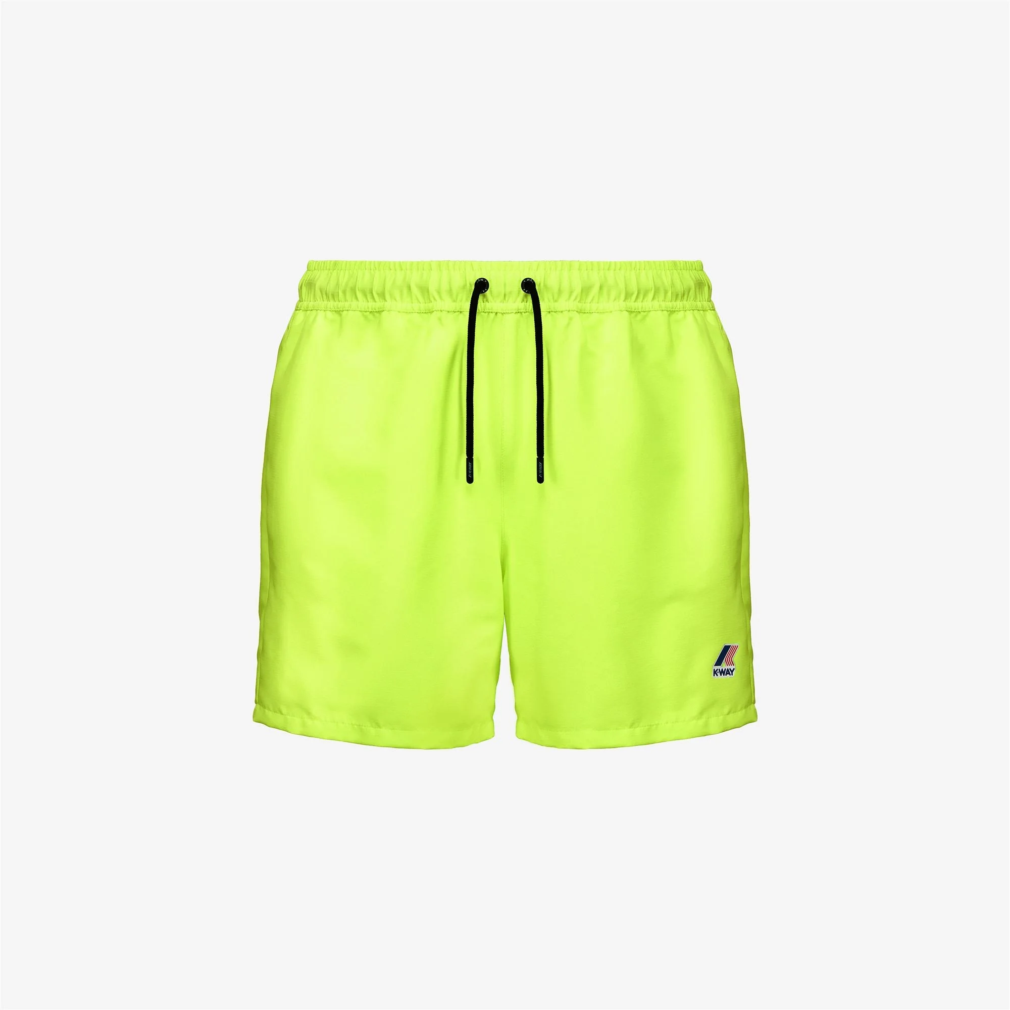 Yellow Men's Packable Swimming Trunks with Inner Mesh Briefs The Oliver swim shorts boast a classic boxer fit, bringing K-Way's signature functionality to the beach or pool. Their mid-thigh-length silhouette is fitted with inner mesh briefs and topped with an elasticated waistband for maximum freedom of movement. Fold them up neatly into the back pocket and stash them conveniently in your suitcase or backpack. - Waterproof, water-repellent, windproof and breathable ripstop - Packable - Inner mesh briefs - Drawstring waist - Side pockets - Rear welt pocket - Regular fit - Printed coloured logo Features Description: Bathing Suits, Swimming Trunks Gender: Man Season: Spring, Summer, Fall, Winter Composition Entire: 100% Polyester Style: K71257W - Color: 559