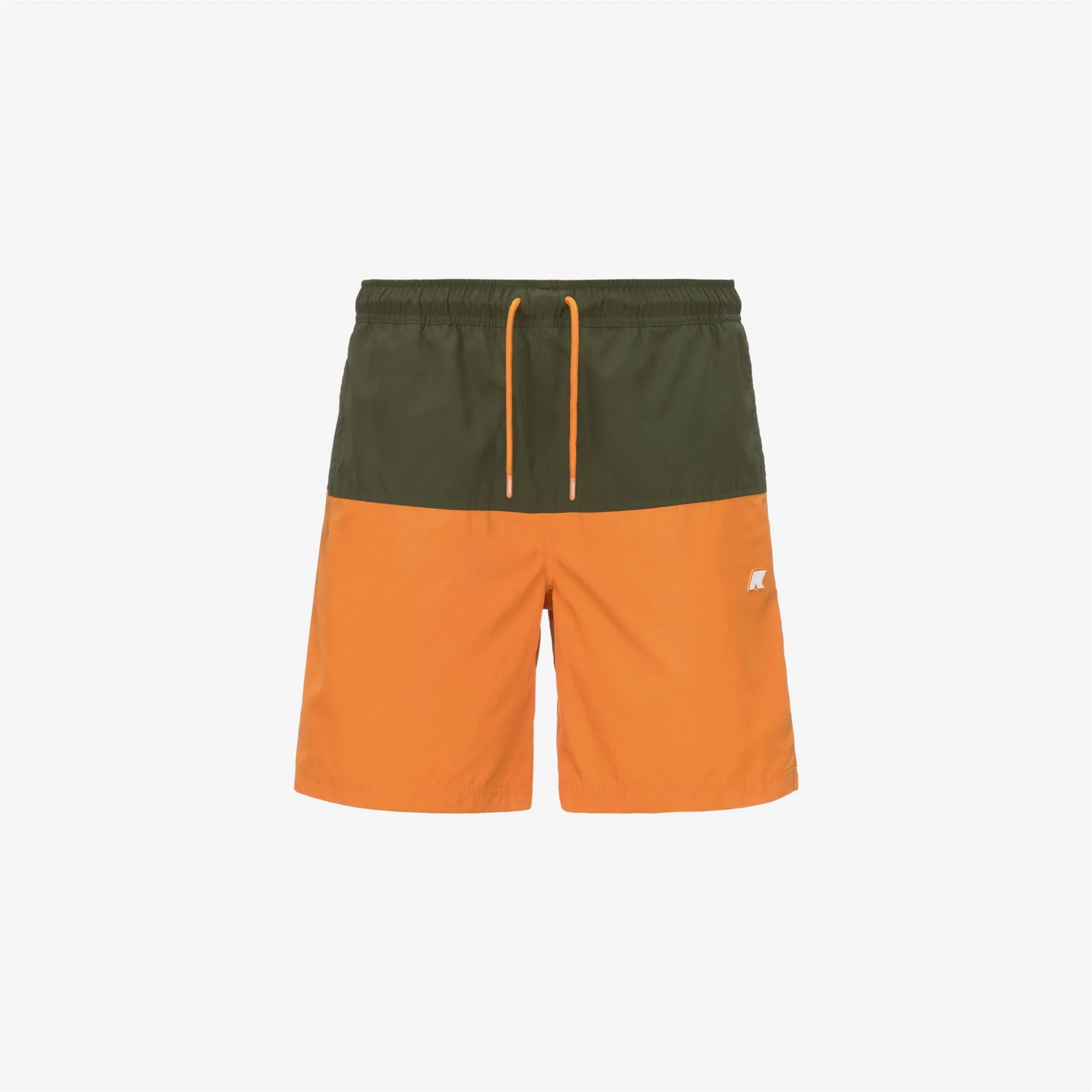 Green Orange Men's Versatile Colorblock Swimming Trunks Lenon is a men's bermuda swimsuit with a versatile and functional colorblock design. The trunks feature two side pockets and one at the back, with the graphic detail of K-Way tape. Made from quick-drying nylon, they have an elasticated waistband, an internal mesh lining, and side vents for maximum freedom of movement. - Quick-dry nylon - Inner mesh briefs - Elasticated waistband - Double colour - Side pockets - Rear strap pocket - Regular fit - White silicone logo patch Features Description: Bathing Suits, Swimming Trunks Gender: Man Season: Spring, Summer Composition External: 5% Elastane, 95% Nylon Lining: 100% Polyester Entire: 100% Polyester Style: K8125WW - Color: AND