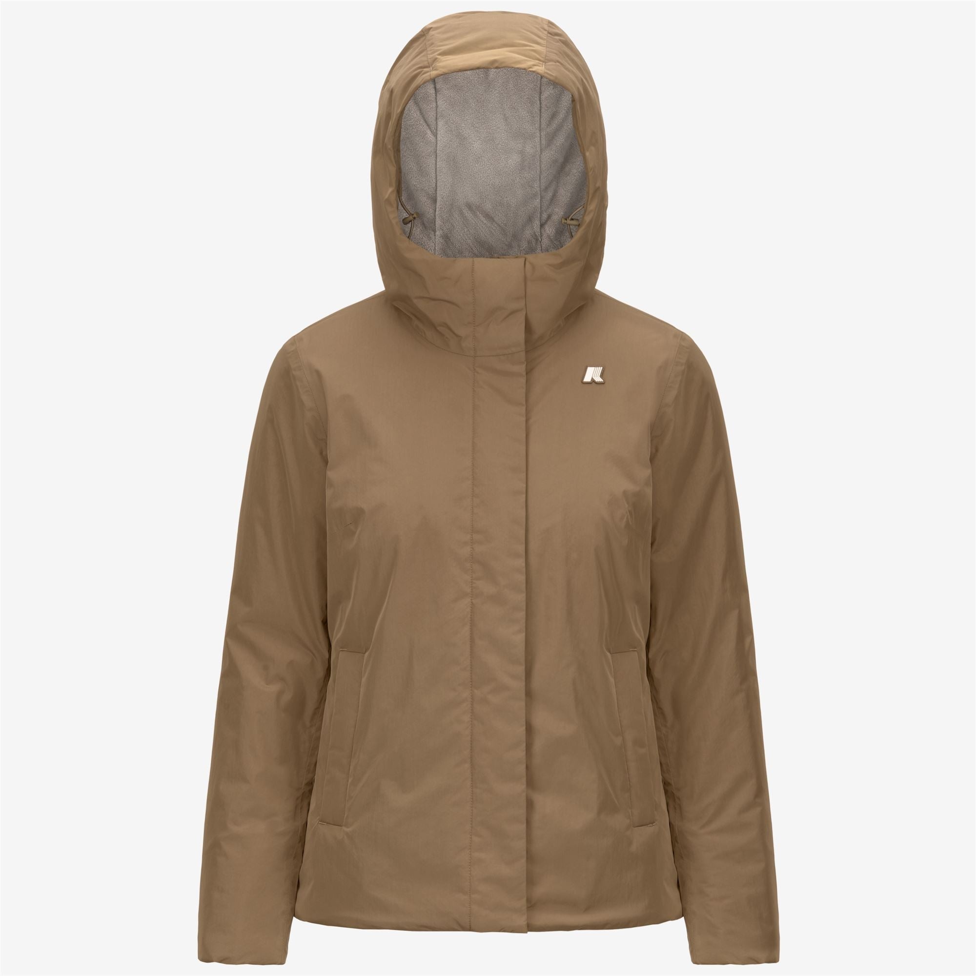 Beige Green Women's Warm Short Jacket with Lightweight Insulation The women’s Lil short jacket is designed to offer protection from the cold during autumn and the first months of winter. Its slim, understated silhouette is crafted from soft touch and performing fabric, insulated with lightweight padding and a soft fabric lining, updated for an even softer feel against the skin. Adjust the fit using the two-way zip fastening and drawstring. - Waterproof external fabric - Soft fabric lining - Lightweight synthetic padding - Medium warmth - Heat-taped seams - Fixed adjustable hood with elastic cords and stoppers - Zip fastening with storm flap - Elasticated cuffs - 2 zip pockets - Adjustable hem with elastic cords - Slim fit - White silicone logo patch Features Description: Jackets, Short Gender: Woman Season: Fall, Winter Composition External: 100% Polyester Lining: 100% Polyester Padding: 100% Recycled Polyester Style: K71324W - Color: AS6