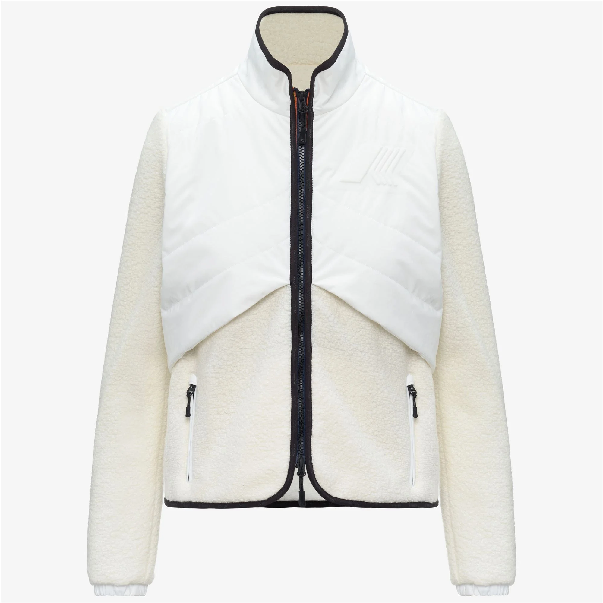 Luberon is a women’s short jacket designed to function as a technical midlayer in winter and snowy conditions. Suitable on its own or under a ski shell depending on the weather, it is made from sherpa-effect Polar fleece with waterproof stretch technical fabric inserts. - Wool and Polar fleece blend fabric - Waterproof stretch polyester inserts - Light warmth rating - High collar - Zip fastening - Inner windproof flap - Elasticated cuffs and hem - Side zip pockets - Regular fit - Tone-on-tone embossed logo Features Description: Fleece, Jacket Gender: Woman Season: Fall, Winter Composition Entire: 4% Other fibres, 21% Nylon, 17% Polyester, 58% Wool External: 24% Poliuretane, 76% Recycled Polyester Style: K5141KW - Color: X42