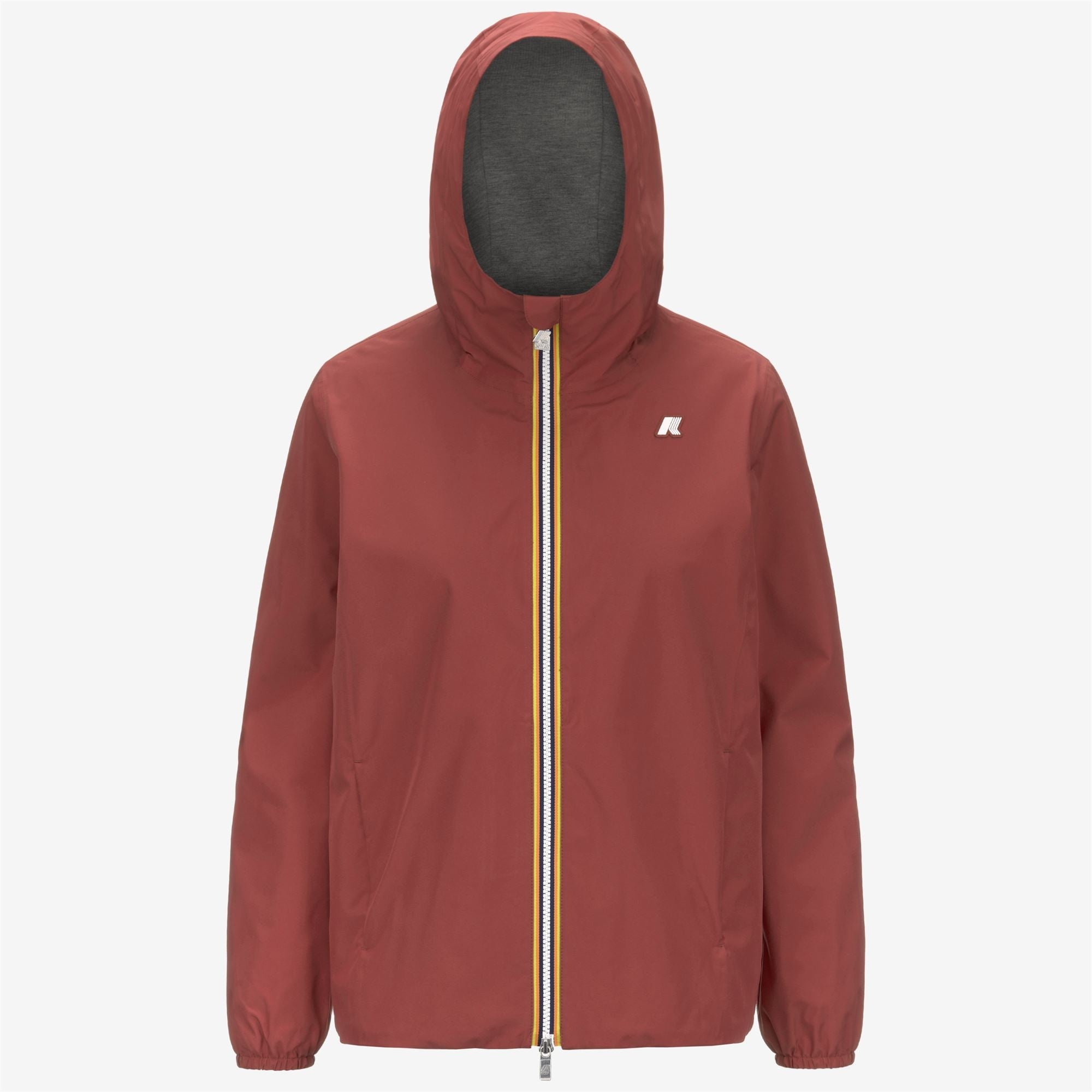 Red brown Women's Mid-Season Waterproof Jacket with Stretch Fabric Marguerite is a women's short jacket offering a mid-season warmth grade. It boasts a casual, modern look, and is made from stretch polyester with a waterproof and windproof coating plus a soft grey melange cotton jersey lining. The inner heat-taped seams and the waistband decorated with the iconic multicoloured K-Way tape provide a distinctive signature touch. - Waterproof, windproof, breathable stretch polyester fabric - Cotton jersey lining - Heat-taped seams - Non-detachable hood - Zip closure - Elasticated cuffs - Adjustable bottom hem - 2 zipped pockets - Ventilation cut-out on the back - Regular fit - White silicone logo Features Description: Jackets, Mid Gender: Woman Season: Spring, Summer Composition External: 100% Polyester Lining: 100% Cotton Shell Fabric A External: 100% Polyester Lining A: 35% Cotton, 65% Polyester Shell Fabric B External: 100% Poliuretane Lining B: 100% Nylon Style: K8138PW - Color: WNM