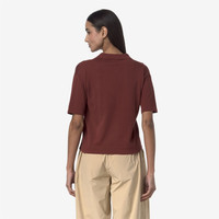 Fiery brown Women's Classic Knit Polo Shirt for City Wear Marlhes is a short-sleeved women's polo shirt with a classic design and a regular fit, crafted from anti-pilling Egyptian cotton yarn known for its soft and smooth texture. This lightweight knitwear piece is characterized by its slightly cropped, feminine cut and features a polo collar with a button placket, and single fold hems. - Anti-pilling cotton yarn - Plain knit - Polo collar - Regular fit - Striped logo on hem Features Description: KNITWEAR, Polo Gender: Woman Season: Spring, Summer Composition Entire: 100% Cotton Style: K4123RW - Color: WNG