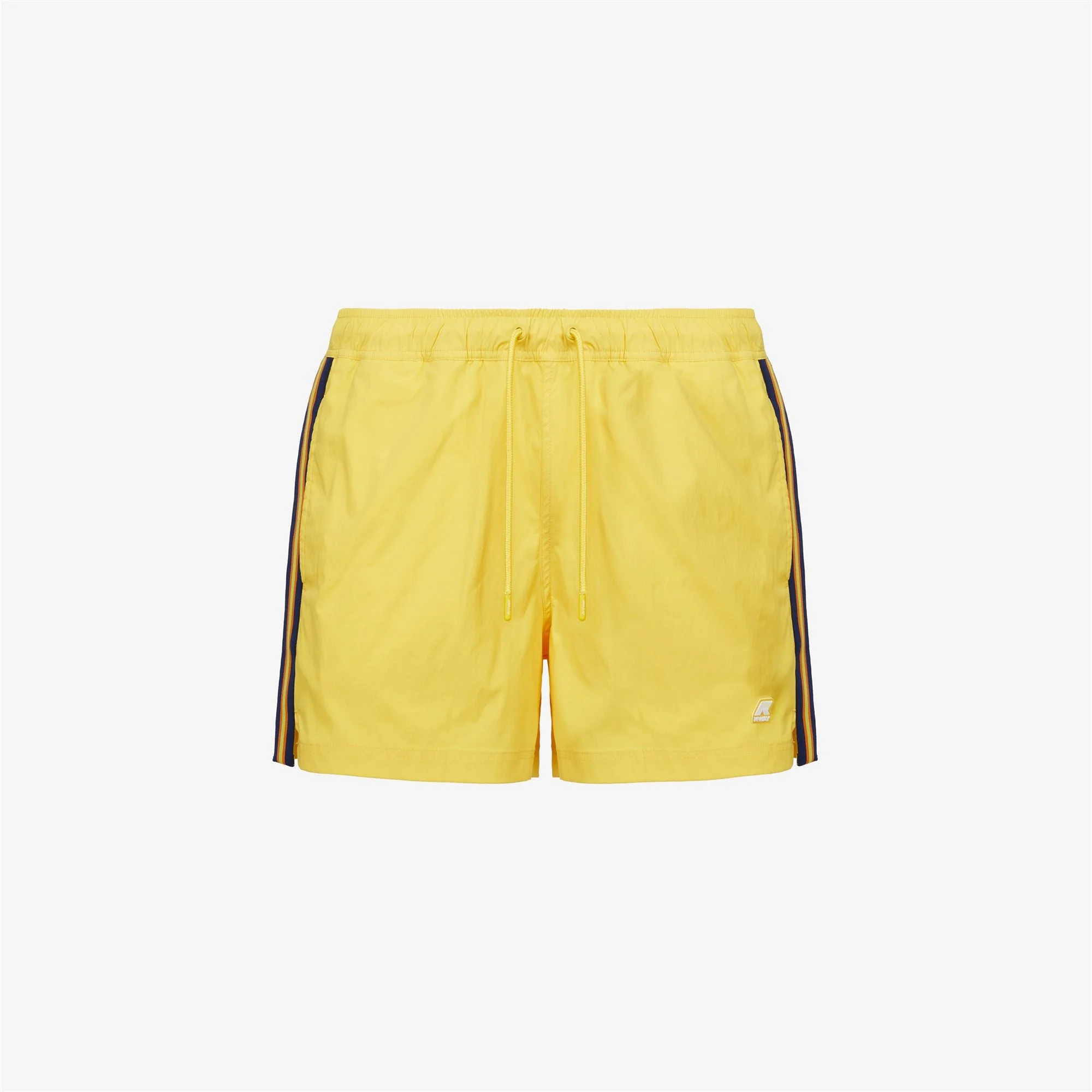 Sunstruck Yellow Men's Classic Swimming Trunks with Quick-Dry Fabric The Salt short swimming trunks boast a classic boxer fit and a versatile, functional design. Crafted from quick-dry nylon, these swim shorts feature an elasticated drawstring waist and side stripes in K-Way's iconic colours. - Made from quick-dry stretch nylon - Mesh lining - Elasticated waistband - Side pockets - Back snap button pocket - Inside coin pocket - Regular fit - Silicone logo Features Description: Bathing Suits, Swimming Trunks Gender: Man Season: Spring, Summer Composition External: 5% Elastane, 95% Nylon Lining: 100% Polyester Style: K2116XW - Color: XZ7