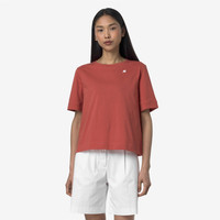 Brown red Women's Casual Cotton T-Shirt with Boxy Cut Selune is a women's crew neck T-shirt made from soft cotton jersey. Its versatile boxy-cut design makes it a wardrobe staple for everyday looks and leisure time. - Cotton jersey fabric - Ribbed crew neck - Regular fit, boxy cut - White silicone logo patch Features Description: T-Shirts & Top, T-Shirt Gender: Woman Season: Spring, Summer Composition Entire: 100% Cotton Style: K2148EW - Color: 703