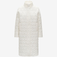 Sonja is a women’s long jacket with a soft, feminine appeal, designed for mid-season wear. Made from water-repellent and windproof recycled nylon, this quilted coat features lightweight PrimaLoft® insulation and a padded high collar for light rain protection and a clean look. - Water-repellent and windproof recycled nylon fabric - Eco-friendly PrimaLoft® padding - Triangle quilting - Medium warmth rating - Padded high collar - Zip fastening with protective flap - 2 snap-button pockets - Regular fit - White silicone logo patch Features Description: Jackets, Long Gender: Woman Season: Spring, Fall, Winter Composition External: 100% Nylon Lining: 55% Nylon, 45% Recycled Nylon Padding: 100% Recycled Polyester Style: K2136IW - Color: X42