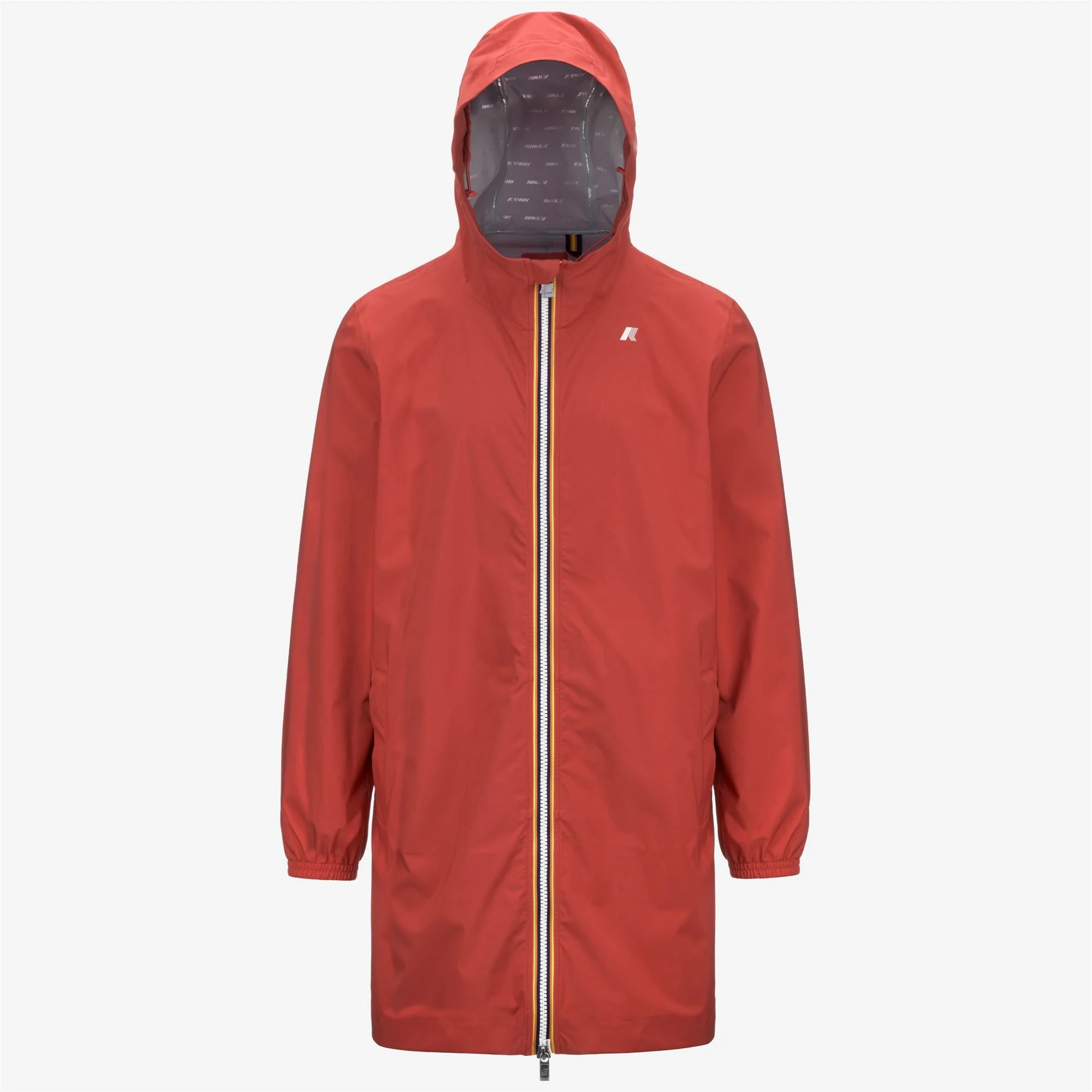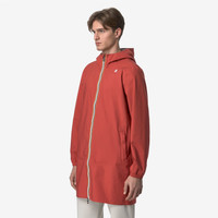 Brown Red Men's Waterproof 3/4 Length Jacket with Stretch Fabric Thomas is a men's three-quarter length jacket with a contemporary straight-line design, perfect for transitional seasons. It's crafted from stretch technical fabric that allows for unrestricted movement while providing rain and wind protection, with water resistance up to 10000 mm. The interior is lined with an insulating membrane with all-over silver-tone K-Way lettering print. Functional details, such as zipped pockets, a wrap-around adjustable hood, and elasticated cuffs ensure an easy, comfortable fit. - Waterproof, windproof and breathable stretch polyester fabric - DWR (Durable Water Repellent) treatment - Water resistance: 10000 mm water column - Logo-printed interior membrane - Heat-taped seams - Adjustable drawstring hood - Flap-covered zip fastening - Elasticated cuffs - 2 zipped pockets - Regular fit - White printed logo Features Description: Jackets, 3/4 LENGTH Gender: Man Season: Spring, Summer, Fall, Winter Composition Entire: 24% Poliuretane, 76% Recycled Polyester Style: K5127RW - Color: 703