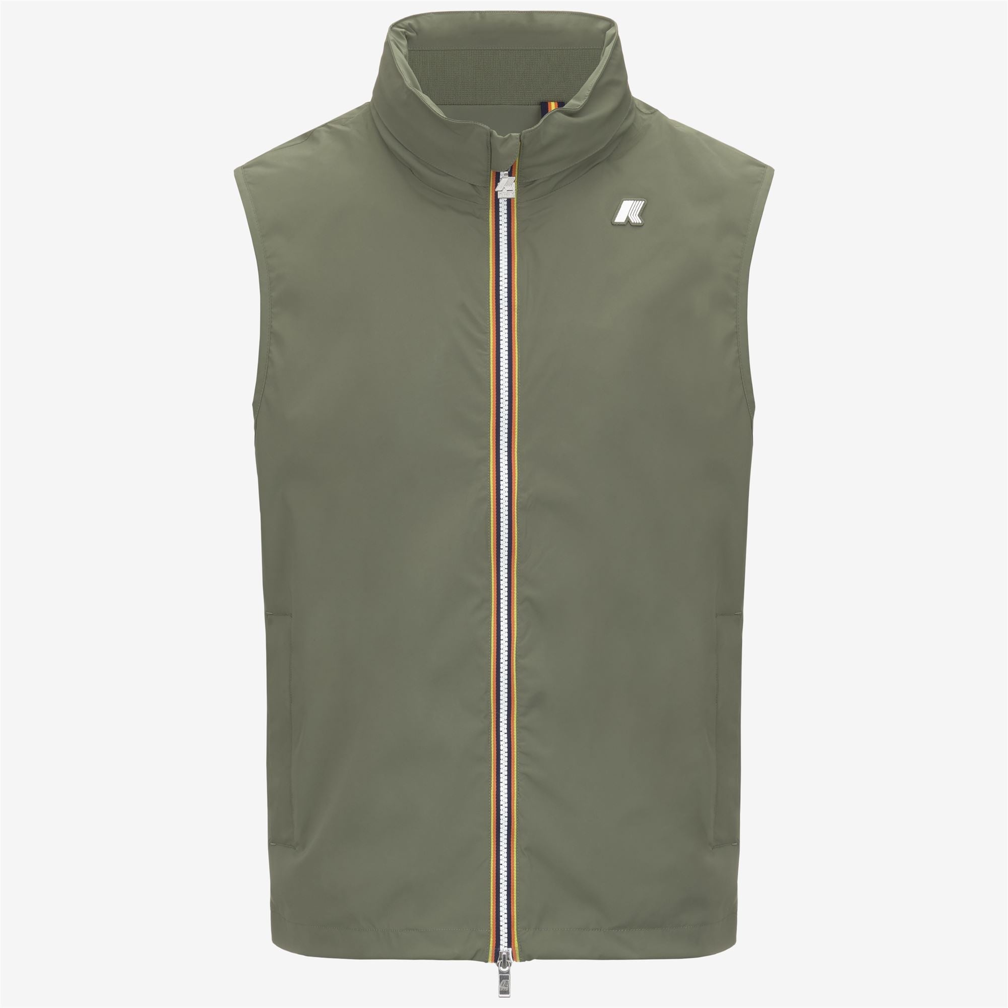Lichen green Men's Weather-Resistant Nylon Vest Valen is a men's waistcoat designed either to be worn over a T-shirt during transitional seasons or under a K-Way jacket when temperatures drop. It is made from stretch nylon which is weather-resistant up to 5000 columns of water, finished on the inside with a soft grey melange cotton jersey lining that provides protection and optimal comfort on the skin. - Waterproof, windproof, breathable stretch nylon fabric - Cotton jersey lining - Heat-taped seams - Zip closure - Ribbed collar - Adjustable drawstring hem - 2 zipped pockets - Slim fit - White silicone logo Features Description: Jackets, Vest Gender: Man Season: Spring, Summer Composition Lining B: 100% Nylon External: 5% Elastane, 95% Nylon Lining: 100% Cotton Lining A: 100% Cotton, 35% Polyester Style: K3123TW - Color: V15
