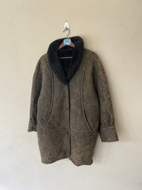 Vintage - OVERPRINTED LE BUFFLE PARIS LEATHER SHEARLING JACKET