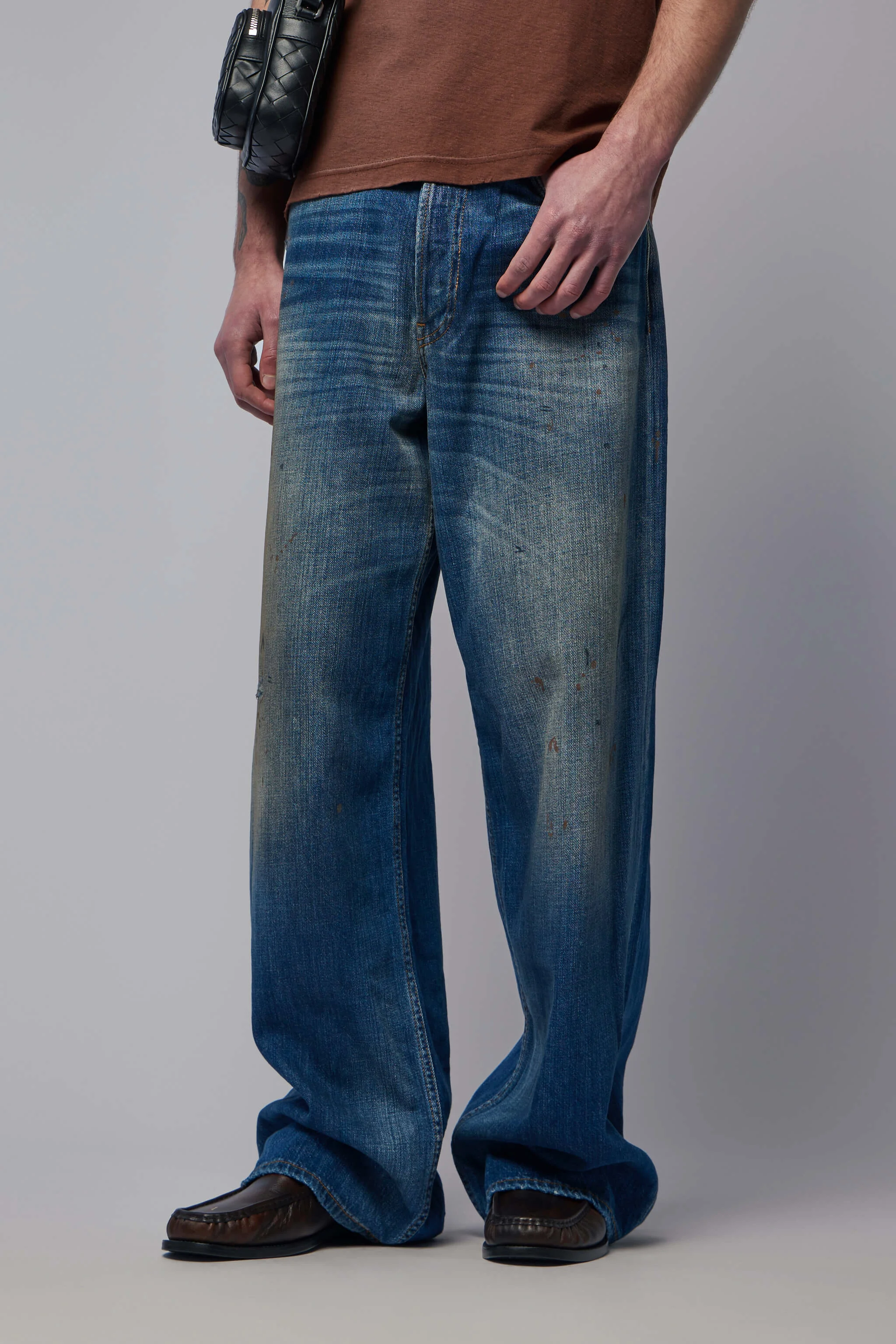 SKU: 155171 Brand style: C00114 Wide-leg jeans featuring a distressed look and a faded blue hue. Designed with a trendy cut, these jeans offer both style and comfort. - Wide-leg cut - Distressed detailing - Faded blue color - Classic five-pocket design - Visible belt loops - Back leather logo patch - Button and zip fly closure - Relaxed fit style Materials: 100% Cotton Color: Mid Blue True to Size The model is 1.86m (6.1ft) and wears a size S. The item fits as expected according to standard sizing. Order your usual size.