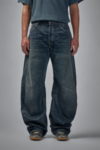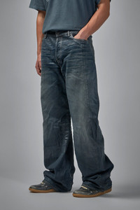 Loose, relaxed fit with a vintage wash for a casual, laid-back look. The robust texture adds a rugged charm, suitable for everyday wear. Wide-leg design enhances comfort while maintaining a stylish silhouette. Materials: 100% Cotton Color: glossy black SKU: 152314 Brand style: B00434 Size and Fit The model is 1.86m (6.1ft) and wears a size 32. The item has a looser cut but is not necessarily oversized. It’s intended for a comfortable and easy wear.