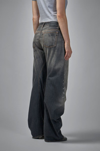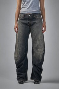 Wide-leg jeans with a relaxed fit, showcasing a distressed and worn-in look. The faded denim and subtle paint splatters create a vintage, laid-back aesthetic. Materials: 100% Cotton Color: black SKU: 152285 Brand style: A00515 Size and Fit The model is 1.76m (5.8ft) and wears a size 29. The item has a looser cut but is not necessarily oversized. It’s intended for a comfortable and easy wear.