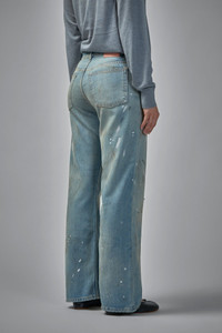 Wide-leg silhouette with a relaxed, casual aesthetic featuring a worn-in look. Distressed elements and splatter details add a rugged, contemporary touch to the classic denim style. Materials: 60% Cotton, 20% Viscose, 20% Polyester Color: light blue SKU: 152286 Brand style: A00512 Size and Fit The model is 1.76m (5.8ft) and wears a size 29. The item has a looser cut but is not necessarily oversized. It’s intended for a comfortable and easy wear.