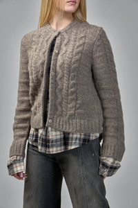 Cardigan with cable-knit panels and a button-front closure. It features a round crew neckline, ribbed hem and cuffs, long sleeves, and a soft fuzzy texture. Materials: 31% Yak Wool, 22% Nylon, 16% Wool, 31% Alpaca Color: beige melange SKU: 152296 Brand style: FN-WN-KNIT000890 Size and Fit The model is 1.80m (5.9ft) and wears a size M. The item fits as expected according to standard sizing. Order your usual size.