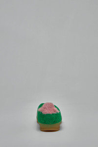 Low top sneakers with a shaggy green upper and contrasting pink fuzzy three-stripe detailing. It features green laces, suede overlays and a translucent gum rubber sole with a low-profile silhouette. Materials: 100% Fabric Upper, 100% Rubber Sole Color: green glow pink SKU: 153744 Brand style: JP8342