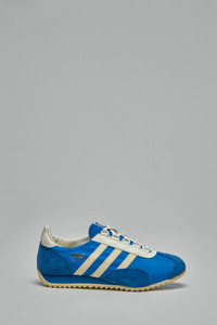 Low top sneakers in vibrant blue with cream accents and a retro low-profile silhouette. Features suede overlays, serrated three-stripe trim, cream laces, a blue branded tongue label and a gum ridged sole. Materials: 100% Leather Upper, 100% Rubber Sole Color: blue SKU: 153208 Brand style: JR5701