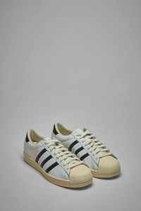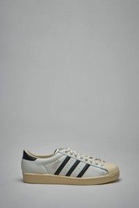 Low-top sneakers with a classic and sporty design, featuring contrasting stripes that add a distinctive touch. Smooth leather construction offers a sleek appearance, while the rounded toe and cushioned sole emphasize comfort and durability. Materials: 100% leather upper, 100% rubber sole Color: core white / core black / cream white SKU: 152853 Brand style: JQ3254