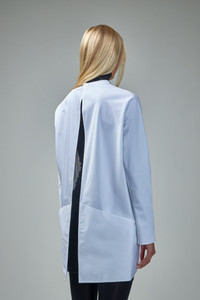 - asymmetric top - long sleeves - crew neck - straight hemline, longer back with slit at the bottom - crafted in cotton poplin Materials: 100% cotton Color: blanc Made in Italy SKU: 147264 Brand style: AA9C09546T611 000 Size and Fit The model is 1.79m (5.9ft) and wears a size 34