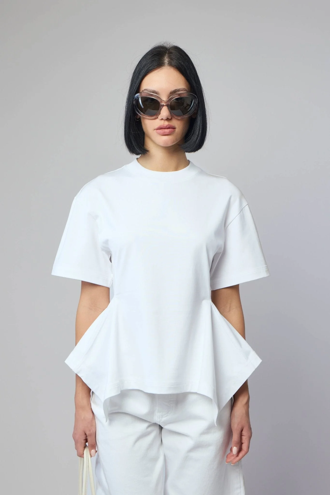 SKU: 156183 Brand style: AA9I0026J103C000 T-shirt with asymmetrical hem adding a modern twist, featuring a classic crew neck and short sleeves. The design is simple yet sophisticated, enhancing any outfit. - White color - Asymmetrical hem - Short sleeves - Crew neck - Smooth fabric texture Materials: 100% Cotton Color: BLANC The model is 1.75m (5.7ft) and wears a size FR36. The item fits as expected according to standard sizing. Order your usual size.