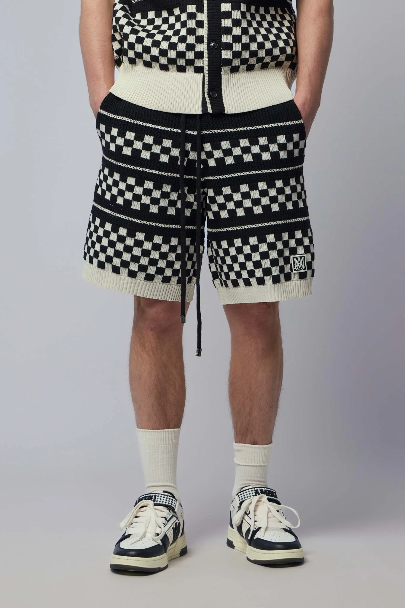SKU: 155600 Brand style: AMBMSO1057-001 Shorts featuring a bold checkered pattern with contrasting ribbed hems. Designed for a casual look, these shorts come with an embroidered logo and a drawstring waist. - Checkered pattern - Drawstring waist - Ribbed hems - Embroidered logo - Casual style Materials: 70% Wool, 30% Polyester Color: Black The model is 1.86m (6.1ft) and wears a size M. The item fits as expected according to standard sizing. Order your usual size.