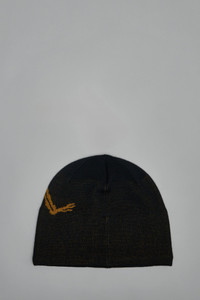 Beanie made from a soft knit fabric in a versatile color. This headwear features a unique graphic design prominent on the front, adding a touch of style. It is designed to provide warmth and comfort while maintaining a sleek profile. Materials: 50% Merino Wool, 50% Recycled Polyester Color: black SKU: 154021 Brand style: X000006756