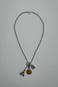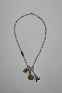 - brass and zamak - necklace - accumulation of several charms - Balenciaga logo engraved - adjustable chain - clasp closure - L18,12 x H10,44 x W0,52 inch Materials: 100% brass Color: silver, gold SKU: 150697 Brand style: 833167 TZ8IS 8966 Size and Fit L18,12 x H10,44 x W0,52 inch