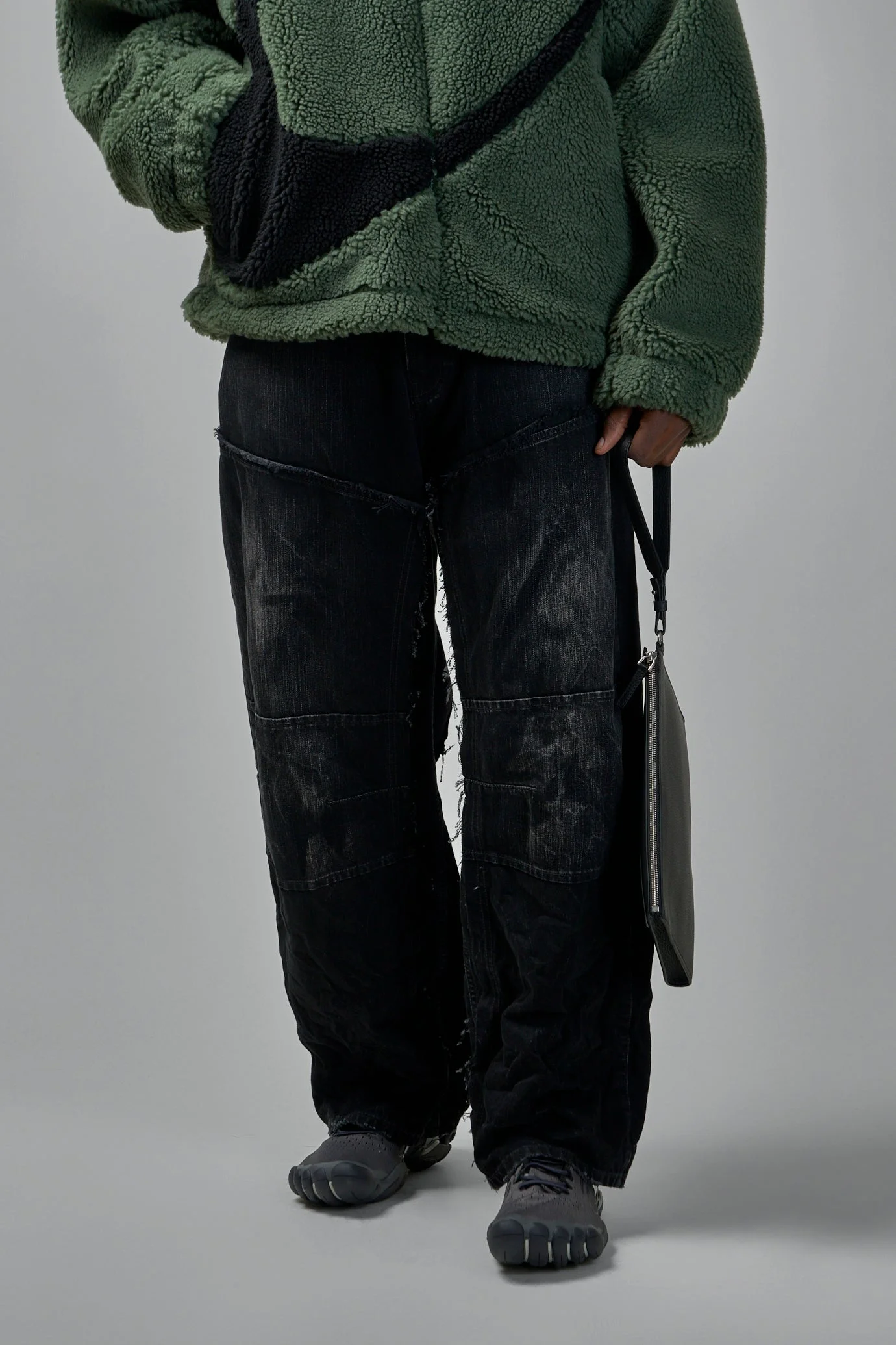 Cargo jeans with a textured, distressed design and a loose fit. They feature multiple visible seams and frayed hems, offering a rugged and edgy aesthetic. Materials: 100% Cotton Color: black fade out SKU: 153442 Brand style: 809444TTW67 Size and Fit The model is 1.89m (6.2ft) and wears a size M.