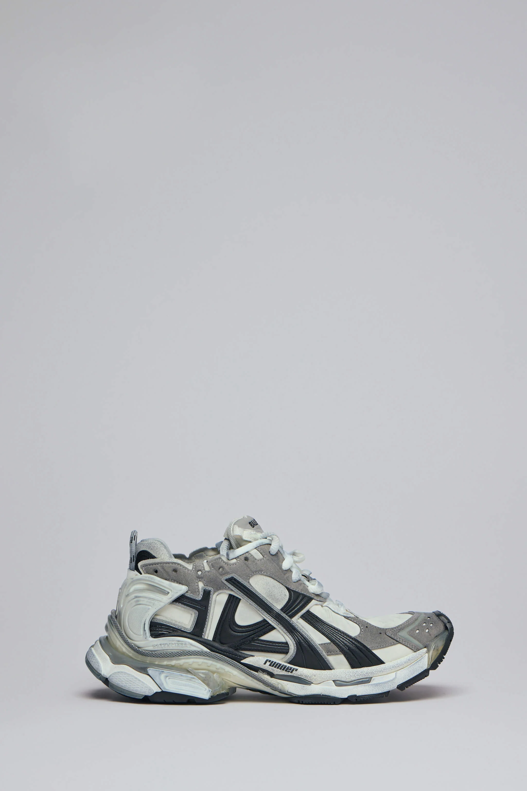 SKU: 153436 Brand style: 772774 W3RNY 9012 High Top Sneakers featuring a layered design with prominent branding, suitable for bold styling. The shoes have a chunky silhouette and panel detailing, offering a statement look. - Layered panel design - Chunky sole - Prominent branding on tongue - Mix of materials - Round toe - Multiple color accents Materials: Nylon and suede-like fabric Color: grey/white/black