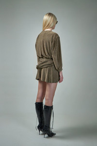 - v-shaped neck - elasticated cuffs - pleated Materials: 70% nylon, 26% fiber metallised, 4% elastane Color: black, gold Made in Italy SKU: 143950 Brand style: 772748 TPV27 1075 Size and Fit The model is 1.80m (5.9ft) and wears a size 38