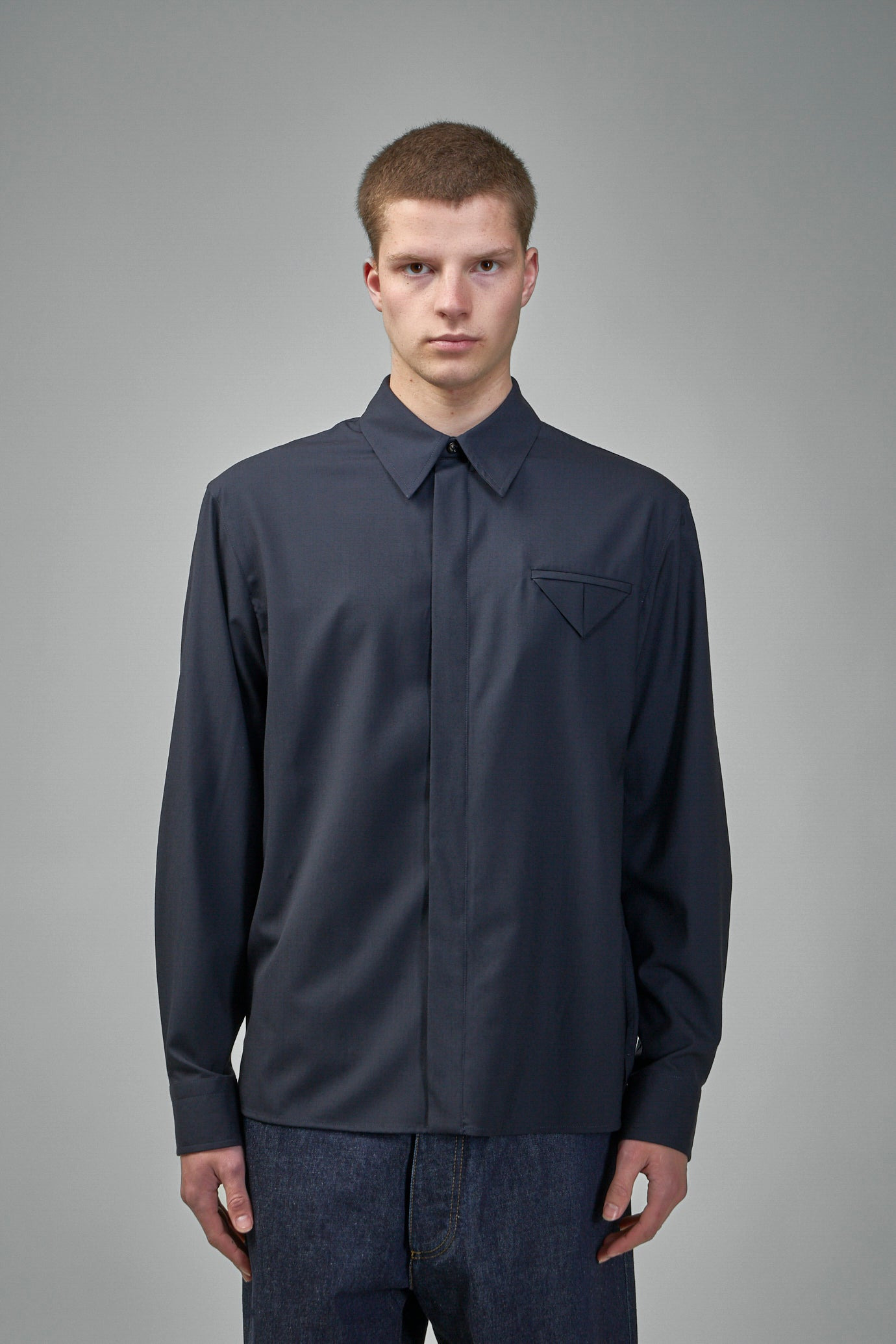 - fine wool shirt - triangle pocket detail - button closure - regular fit Materials: 100% wool Color: midnight blue SKU: 148534 Brand style: 703578 V4XP0 4246 Size and Fit The model is 1.86m (6.1ft) and wears a size 48. The item fits as expected according to standard sizing. Order your usual size.