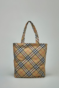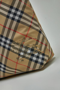 - top handles - zip closure - interior zip pocket - appliqued Equestrian Knight Design at front - Burberry Check lining Materials: 92% polyester, 8% polyurethane Color: sand Made in Italy SKU: 148291 Brand style: 8097716 Size and Fit 33 x 12.5 x 65 cm